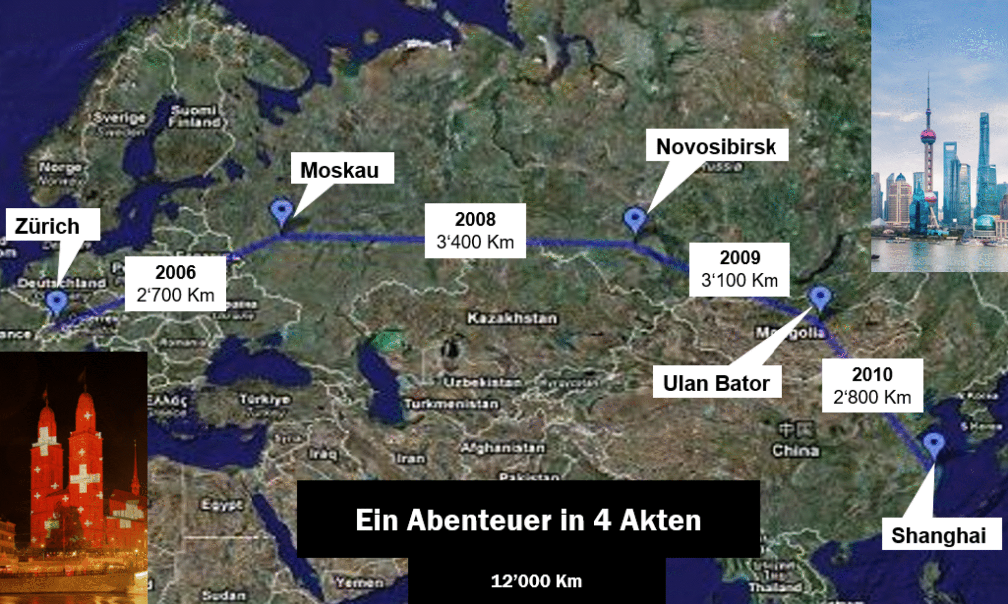 „Zürich – Shanghai 2010“ – in drei weiteren Etappen von Moskau bis nach Shanghai, pünktlich zur Weltausstellung.