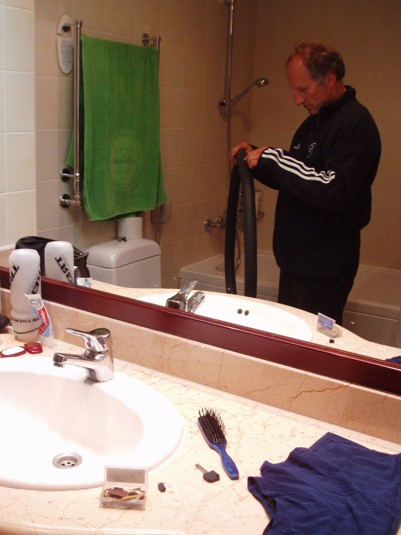 Die Temperaturen in Minsk sind spürbar tiefer und wir müssen uns warm anziehen. Nach einer einstündigen Massage, welche knapp USD 10.- kostet, geht es ins Dampfbad. Beat touchiert mit seinem rechten Bein eine alte Eisenstange, welche aus der Sitzbank ragt. Sie ist brandheiss und Beat zieht sich Verbrennungen zu. Mitleid gibt es im Team bekanntlich keines.