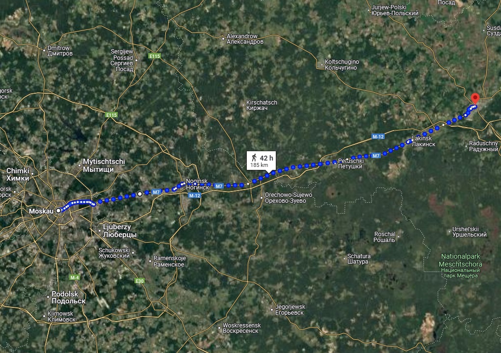 Pünktlich um 08:30 starteten wir zu unserem Abenteuer. Nach ca. 25 Km verliessen wir den hektischen, schadstoffreichen Morgenverkehr von Moskau und rollten auf der vierspurigen Autobahn M7 Richtung Vladimir.