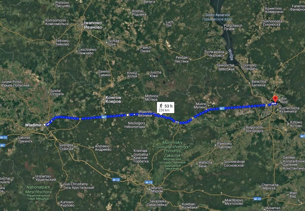 Unser erster Abschnitt bis Kazan steht unter dem Motto „Einfahren und Routinen einspielen“. Die ganze Nacht hat es geregnet und als wir heute morgen Vladimir verliessen waren die Strassen nass und bald setzte Nieselregen ein. „Dreck fressen“ war wieder mal angesagt.
