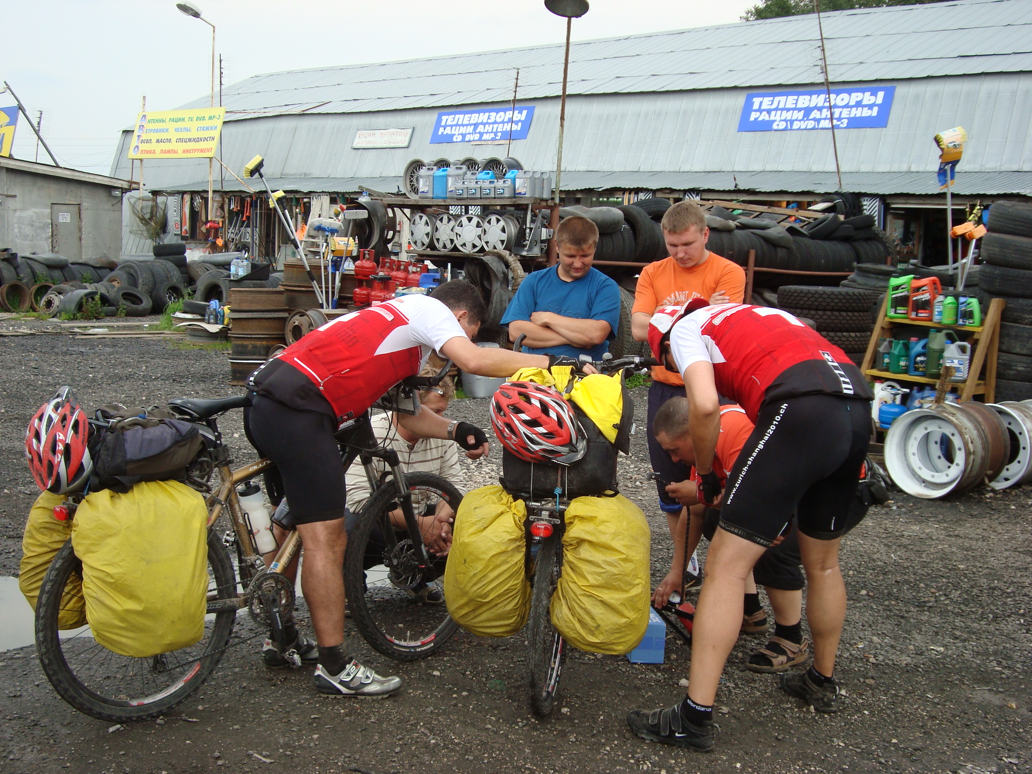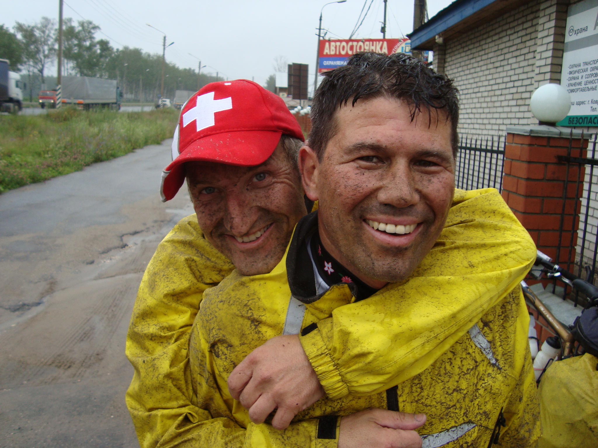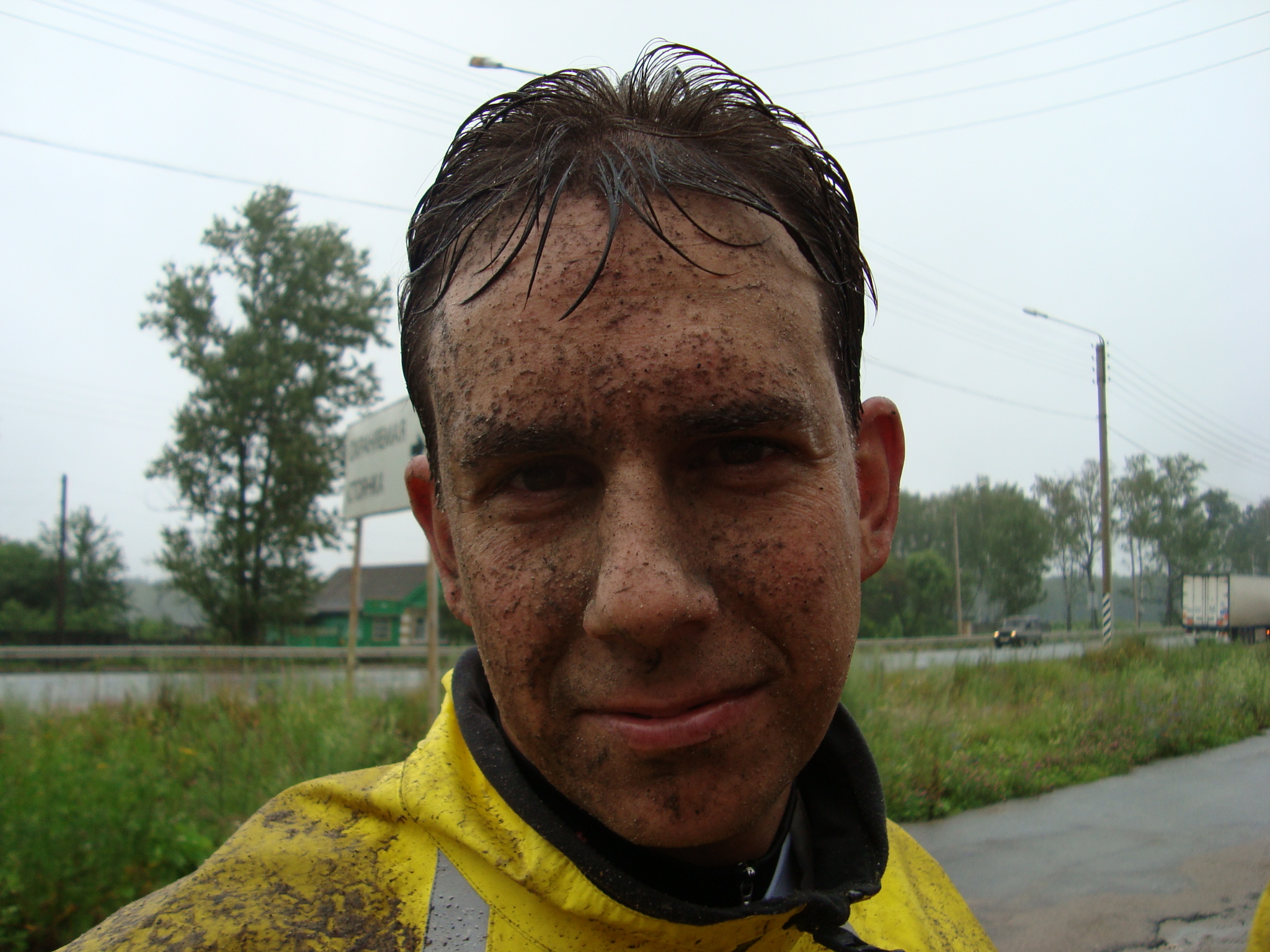 Endlich in Nischni Novgorod angekommen machte Grazi Bekannschaft mit dem russischen Asphalt. Dank ausgefeilter Sturztechnik und viel Glück blieb es bei Schürfungen am Bein und einer Hüftprellung.