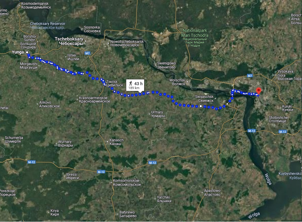 Um 16:15 waren wir wieder startklar. Vor uns lagen „nur“ noch 174 Km. Mit einer par force Teamleistung erreichten wir nach 17 Std. um 00:47 das Hotel in Kazan.