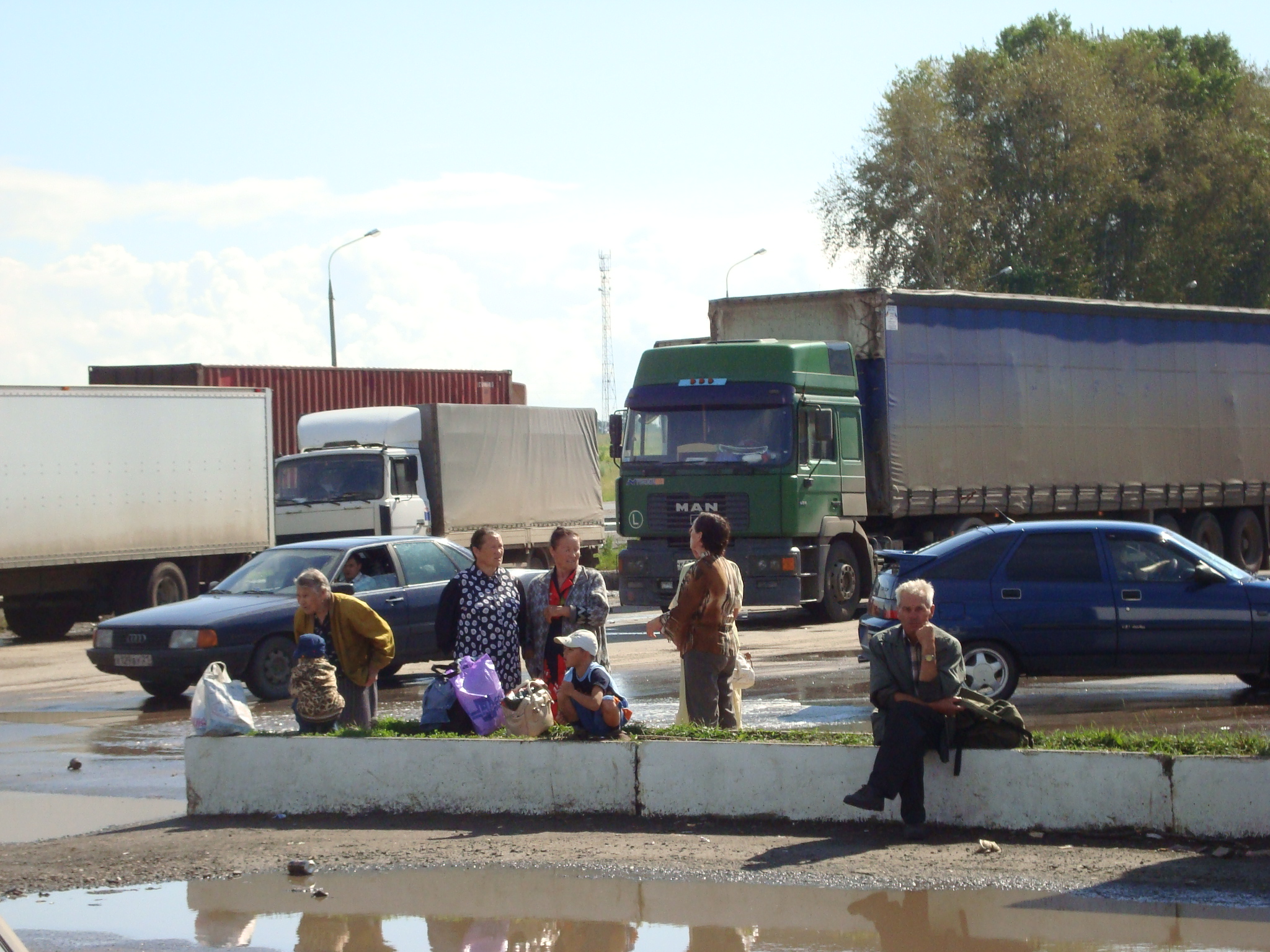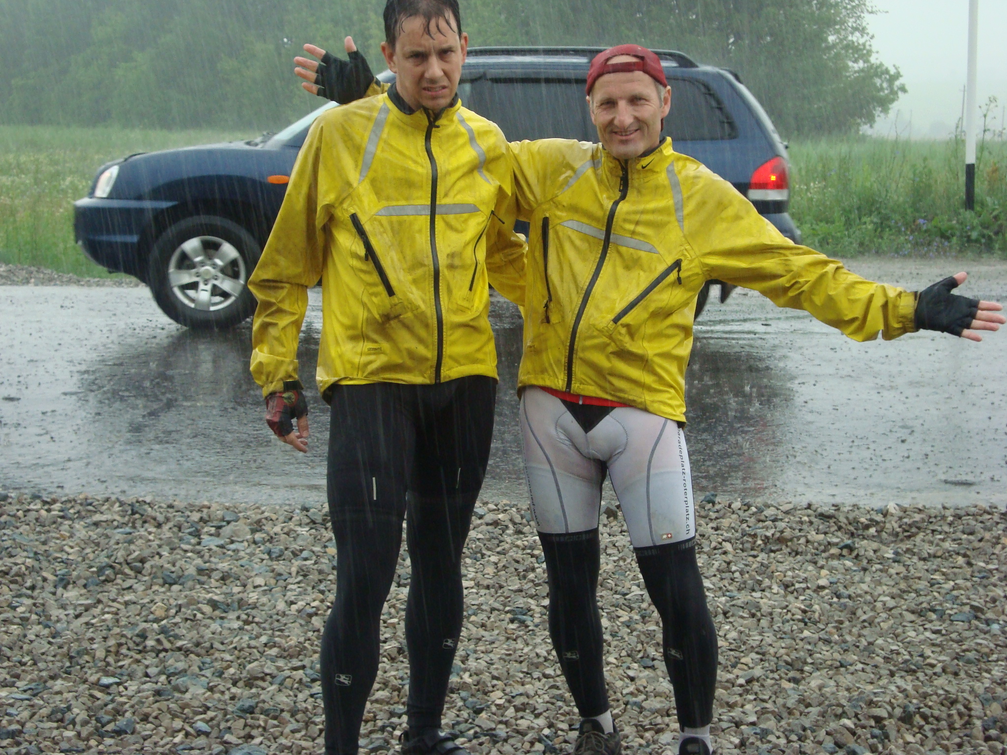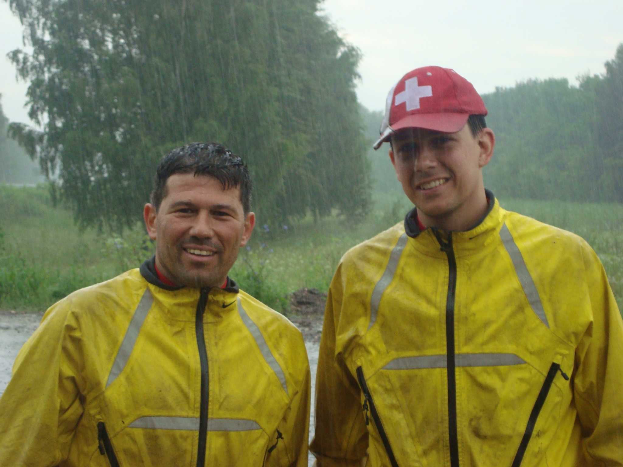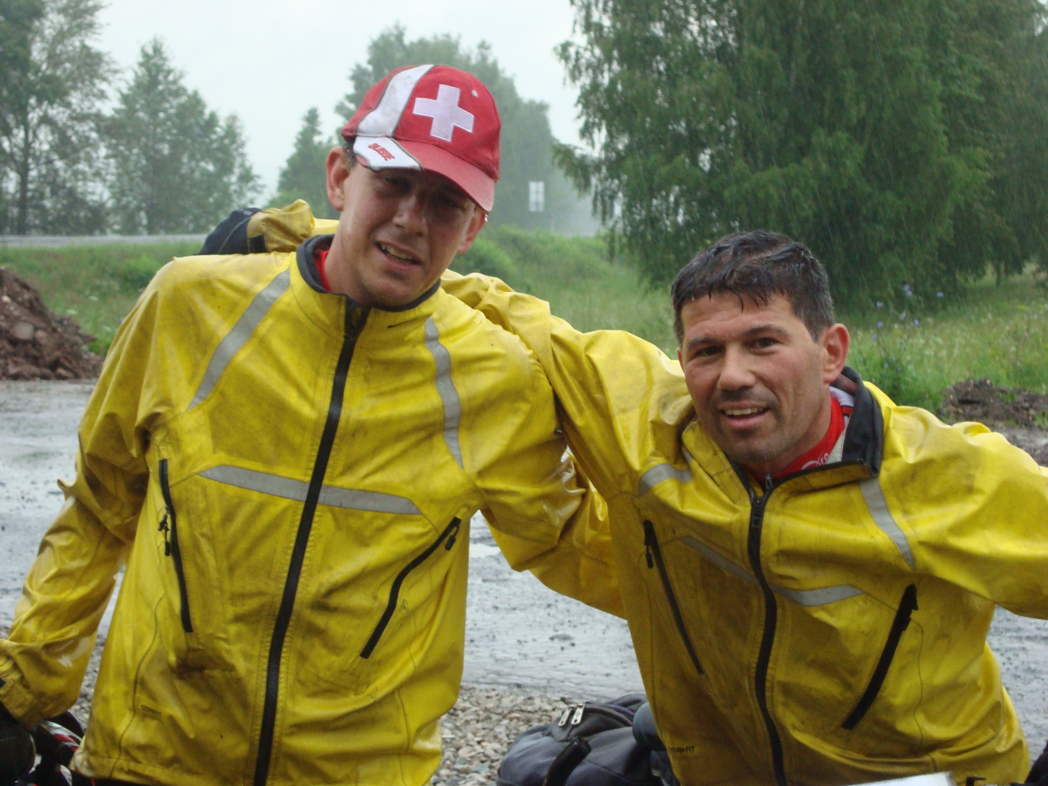 Während den ersten drei Stunden hatten wir drei Begleiter. Blitz, Donner und sintflutartiger Dauerregen. Ob des Wassers nicht genug wurden wir regelmässig, zusätzlich von unseren russischen Lastwagenfreunden geduscht. Unsere automatische Hinterrad-Abspritzanlage kompletierte das tolle Wasserspiel.
