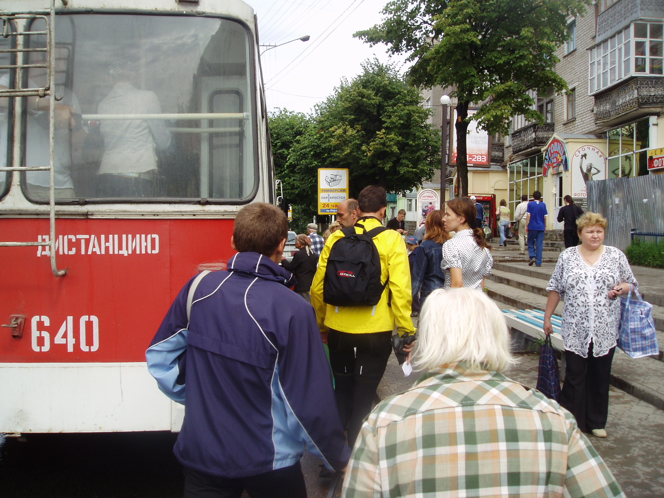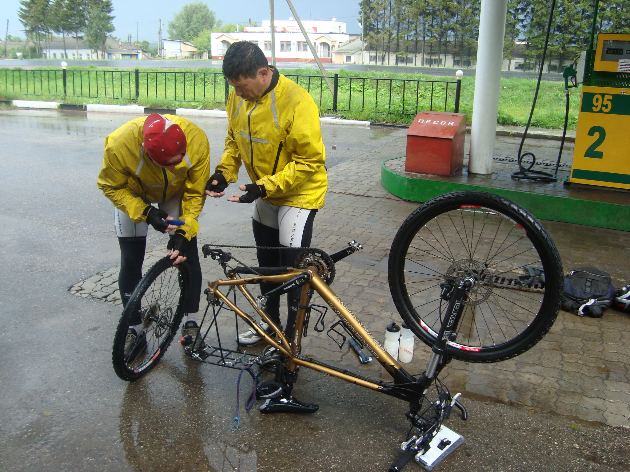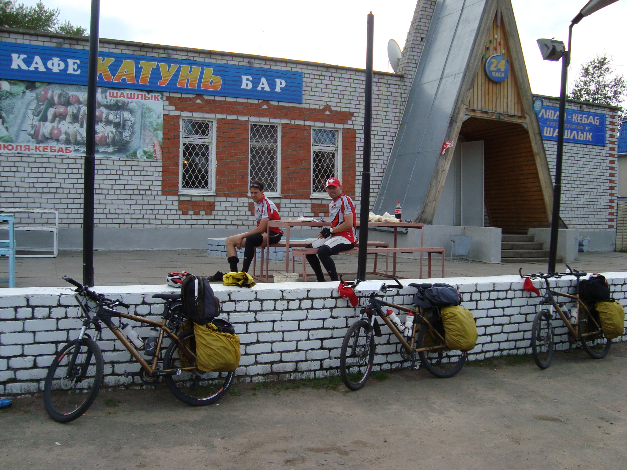 Einen kurzen Moment waren wir ratlos und der Gedanke mit einem Lastwagen nach Kazan zu fahren geisterte durch unsere Köpfe. Dann entschied die Tourleitung ins nahe gelegene Ceboksary zu fahren und neue Schläuche zu suchen. Beat und Matt machten sich mit dem Bus auf den Weg, während Graziano beim Material blieb. 2 Std. später waren wir dank der Hilfe von Einheimschen mit 5 top Schläuchen wieder zurück.