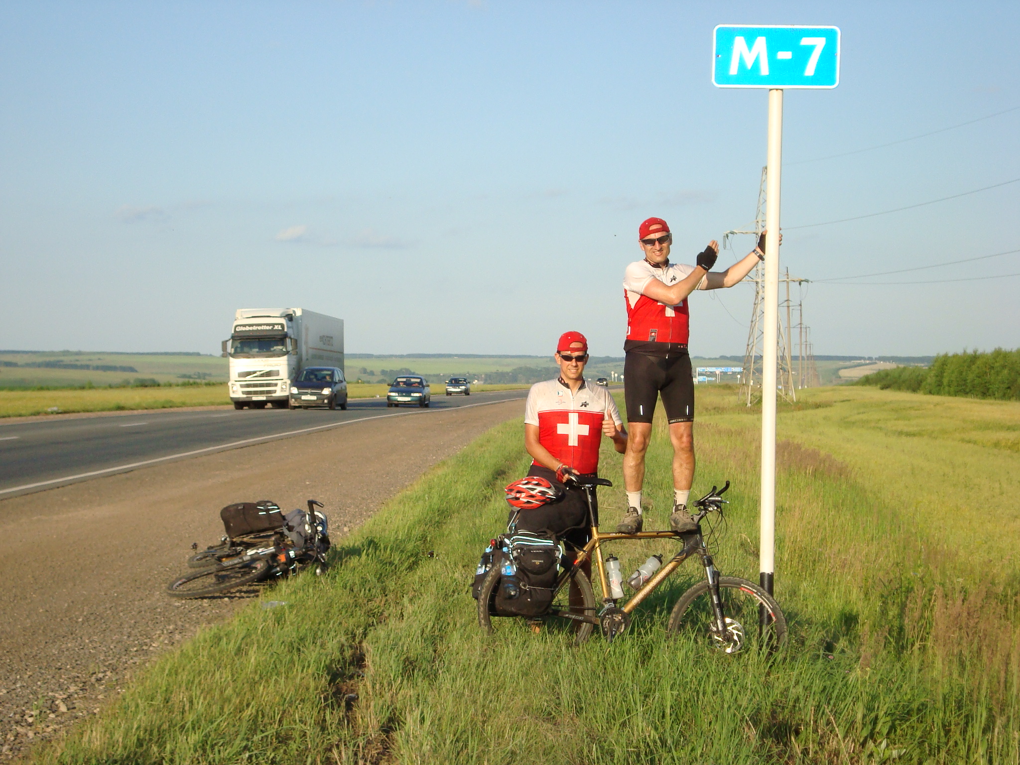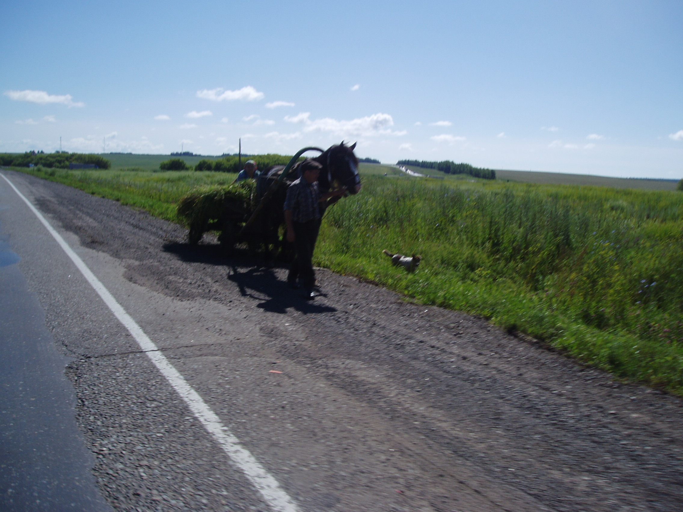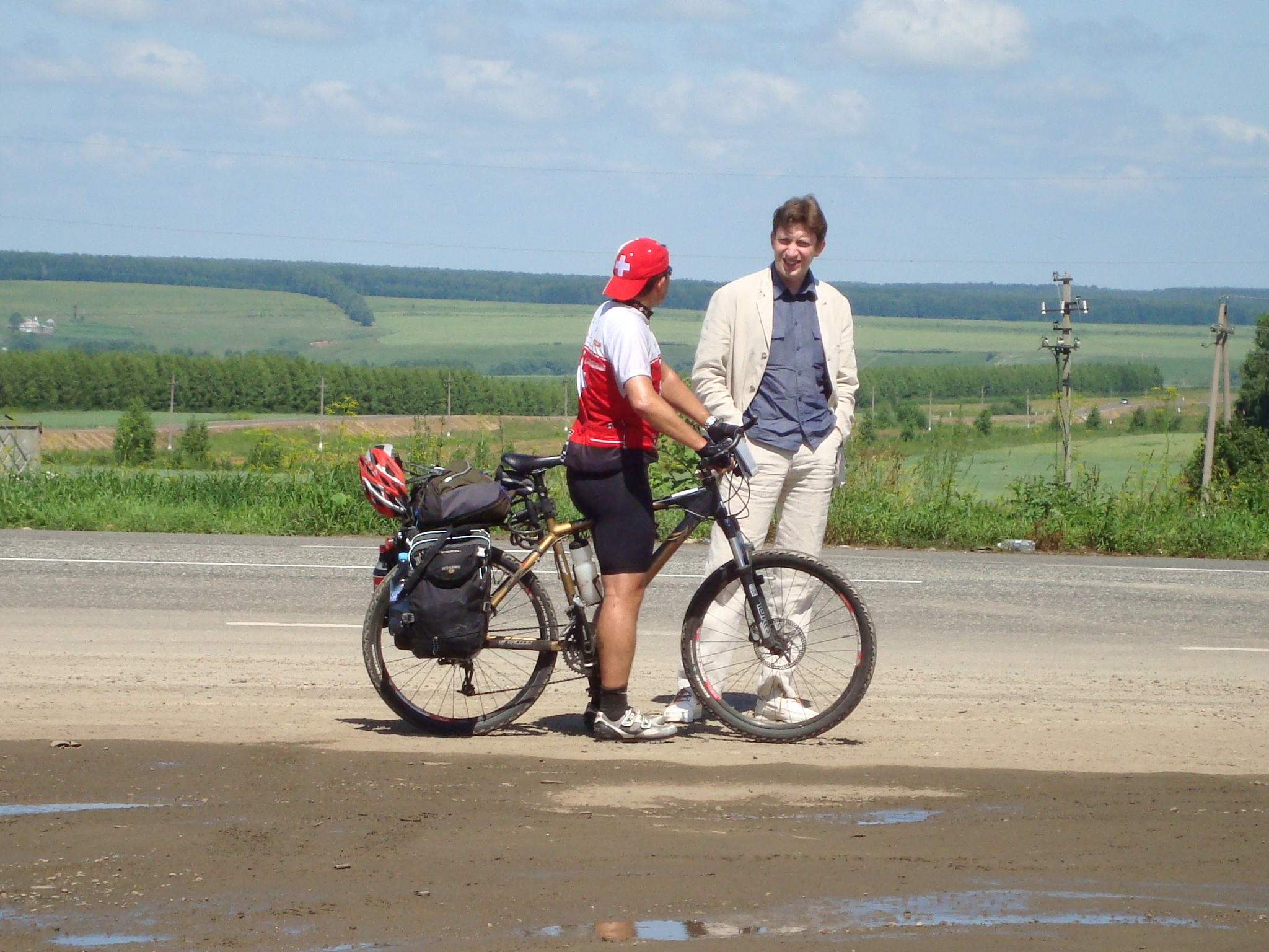 Der heutige Tag empfing uns mit prächtigem Sonnenschein und das blieb auch so bis am Abend. Als wir Kazan verliessen trafen wir überraschenderweise sehr gute Strassenverhältnisse an. Heute machte uns einzig die Hitze zu schaffen. Unterwegs bei einem Zwischenhalt kam ein Tartar, mit akzentfreiem englisch auf uns zu. Er war auch schon in Zürich gewesen und wollte sich mit uns unterhalten. Wir vereinbarten uns in Chelny zum Nachtessen zu treffen.