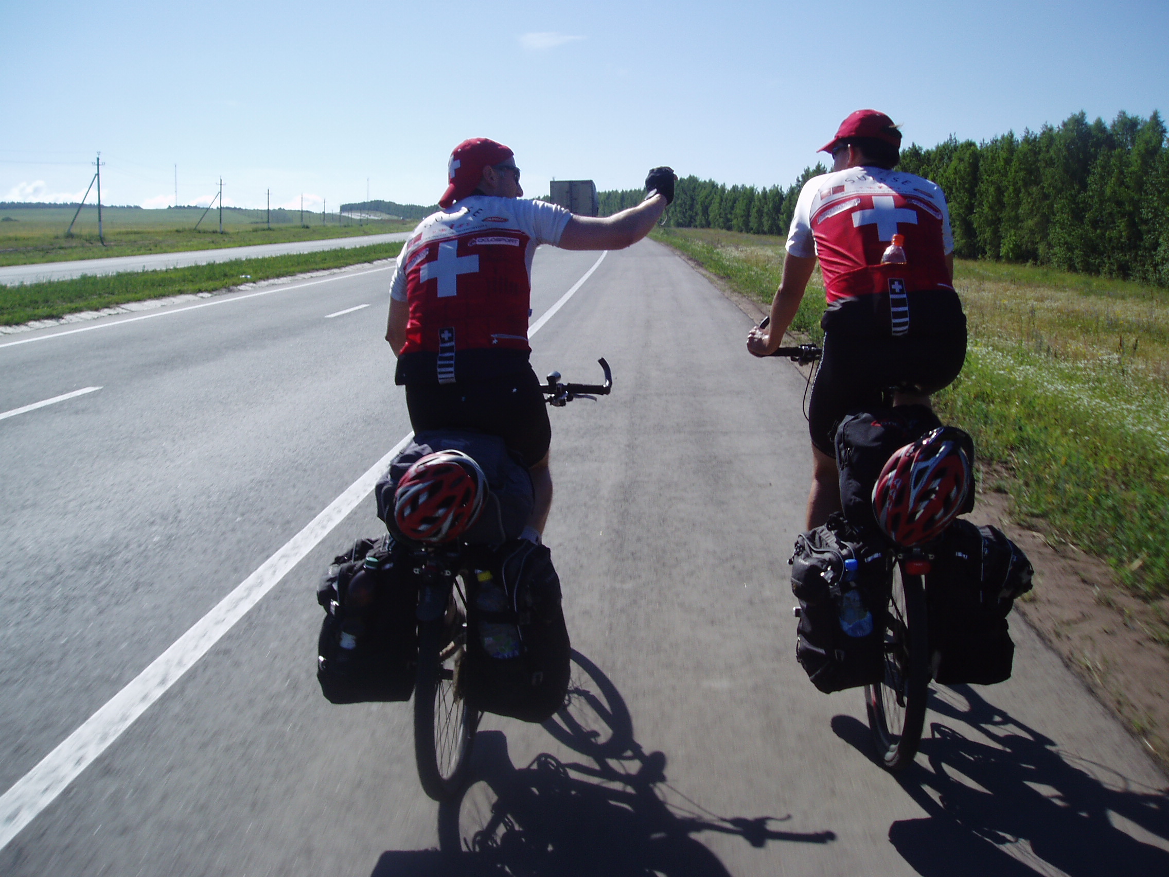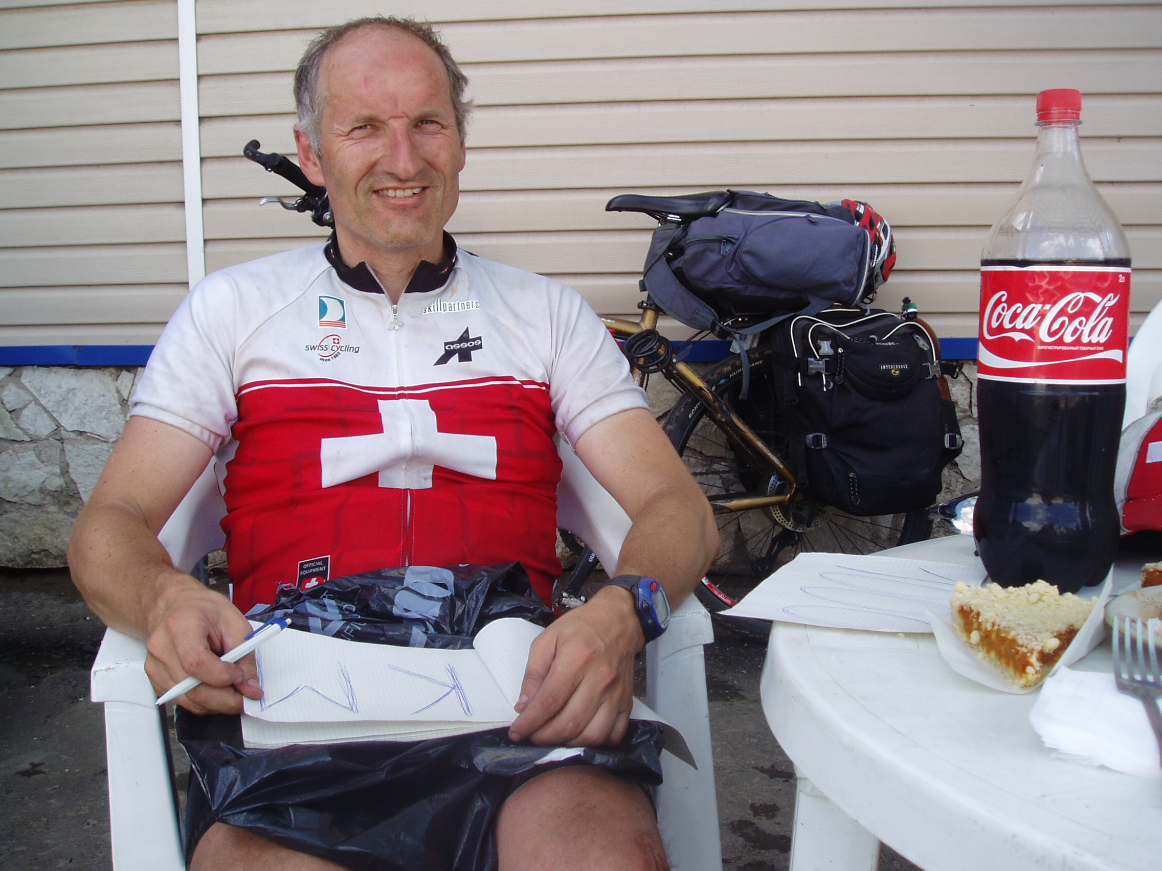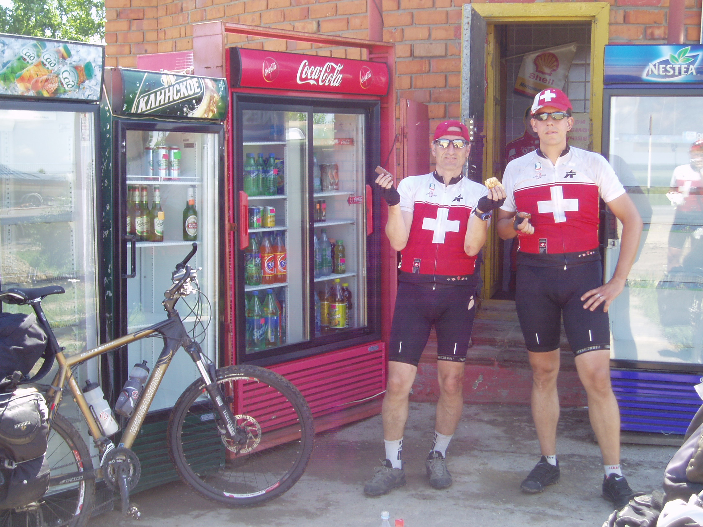 Der heutige Tag empfing uns mit prächtigem Sonnenschein und das blieb auch so bis am Abend. Als wir Kazan verliessen trafen wir überraschenderweise sehr gute Strassenverhältnisse an. Heute machte uns einzig die Hitze zu schaffen. Unterwegs bei einem Zwischenhalt kam ein Tartar, mit akzentfreiem englisch auf uns zu. Er war auch schon in Zürich gewesen und wollte sich mit uns unterhalten. Wir vereinbarten uns in Chelny zum Nachtessen zu treffen.