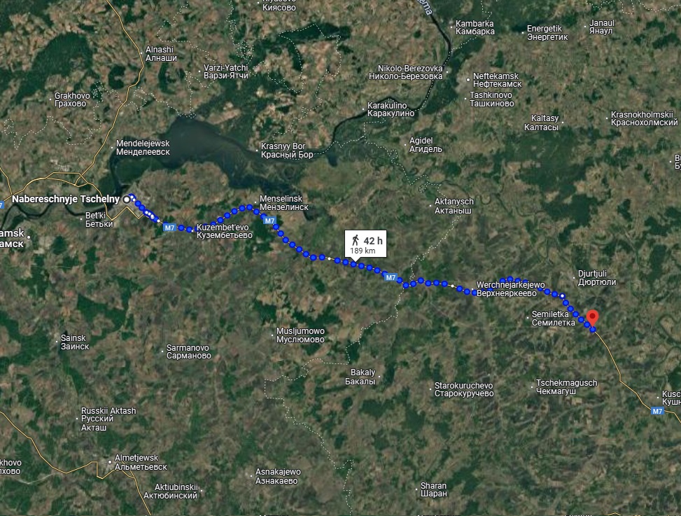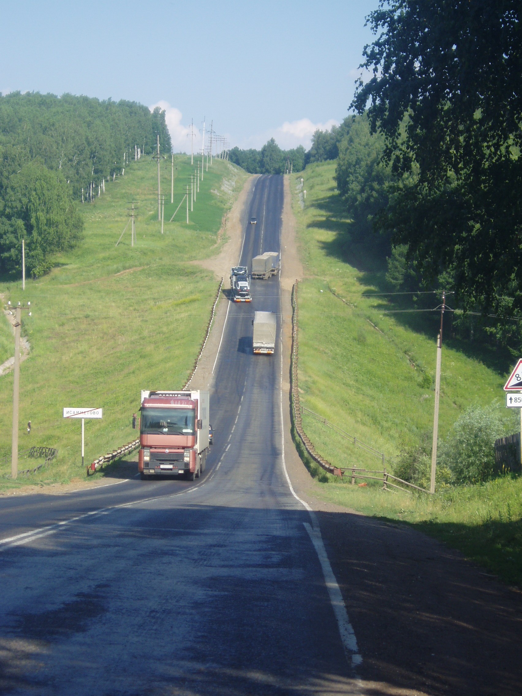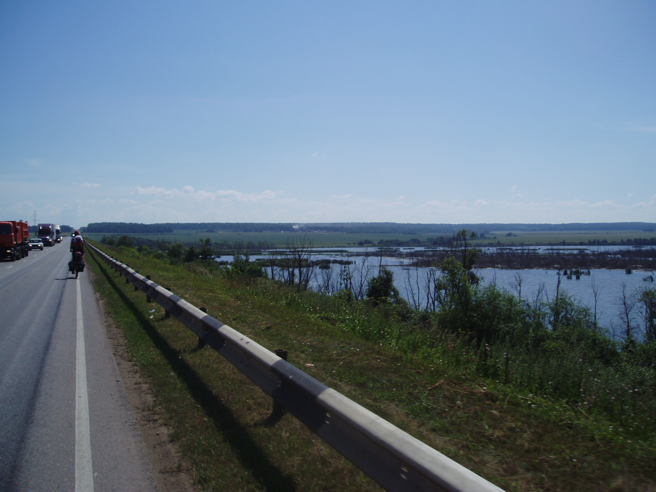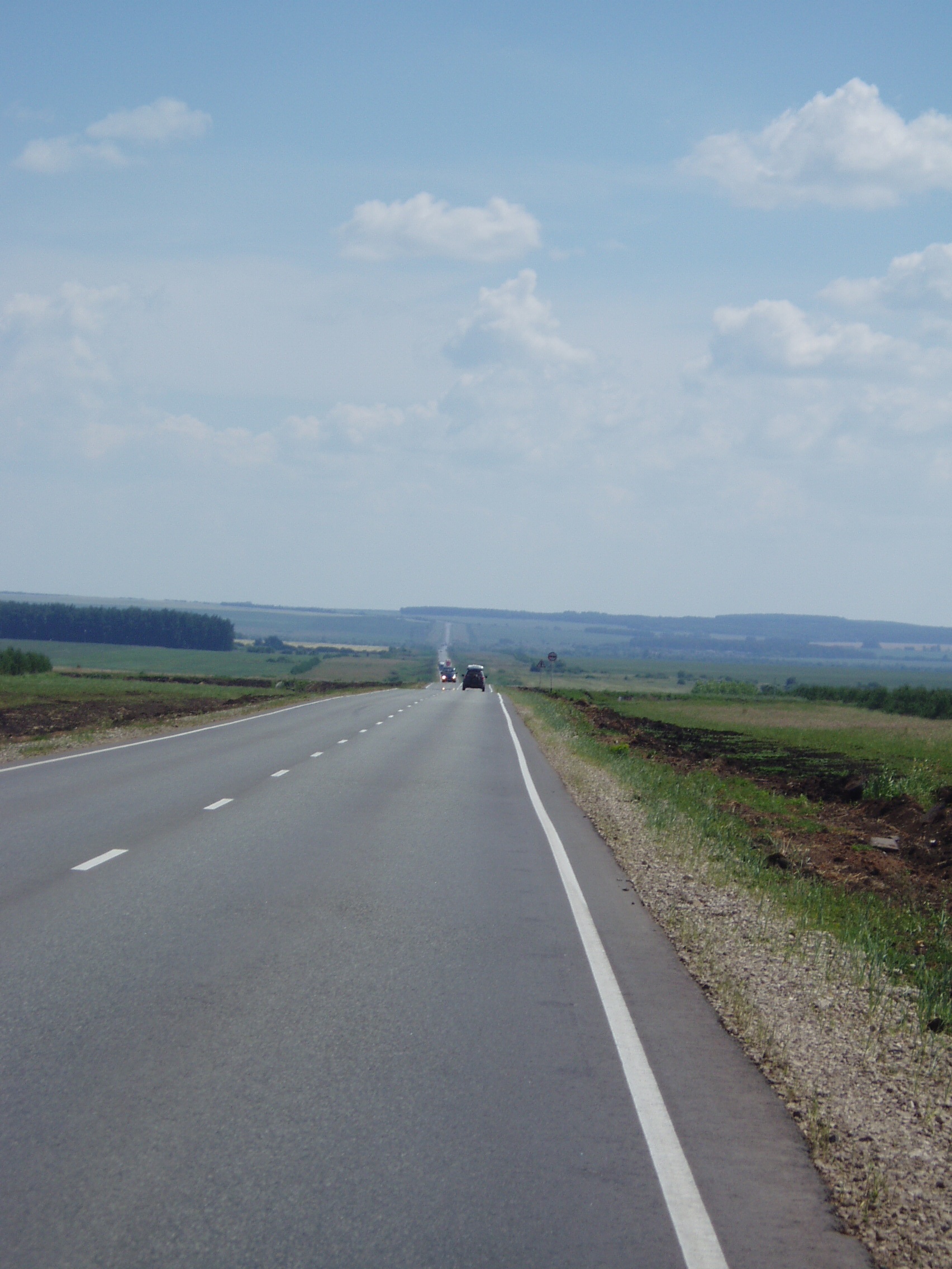 Ohne zu wissen, was für eine Schlafgelegenheit wir am Ende des Tages haben werden, verliessen wir Chelny bei Sonnenschein. Das Thermometer stieg und stieg bis 35 Grad. Die gleissende Hitze machte uns heute arg zu schaffen und weichte Stellenweise sogar den Asphalt auf.
