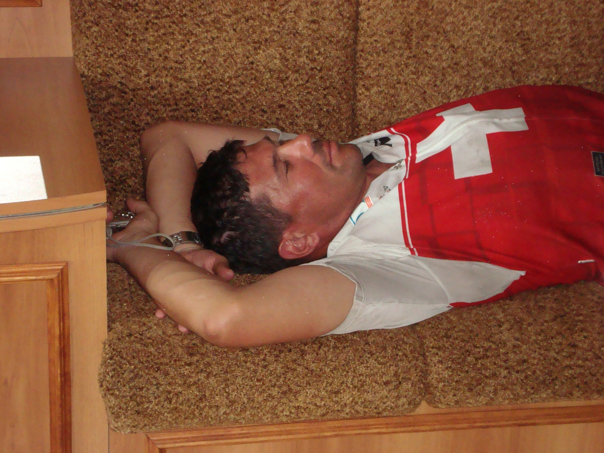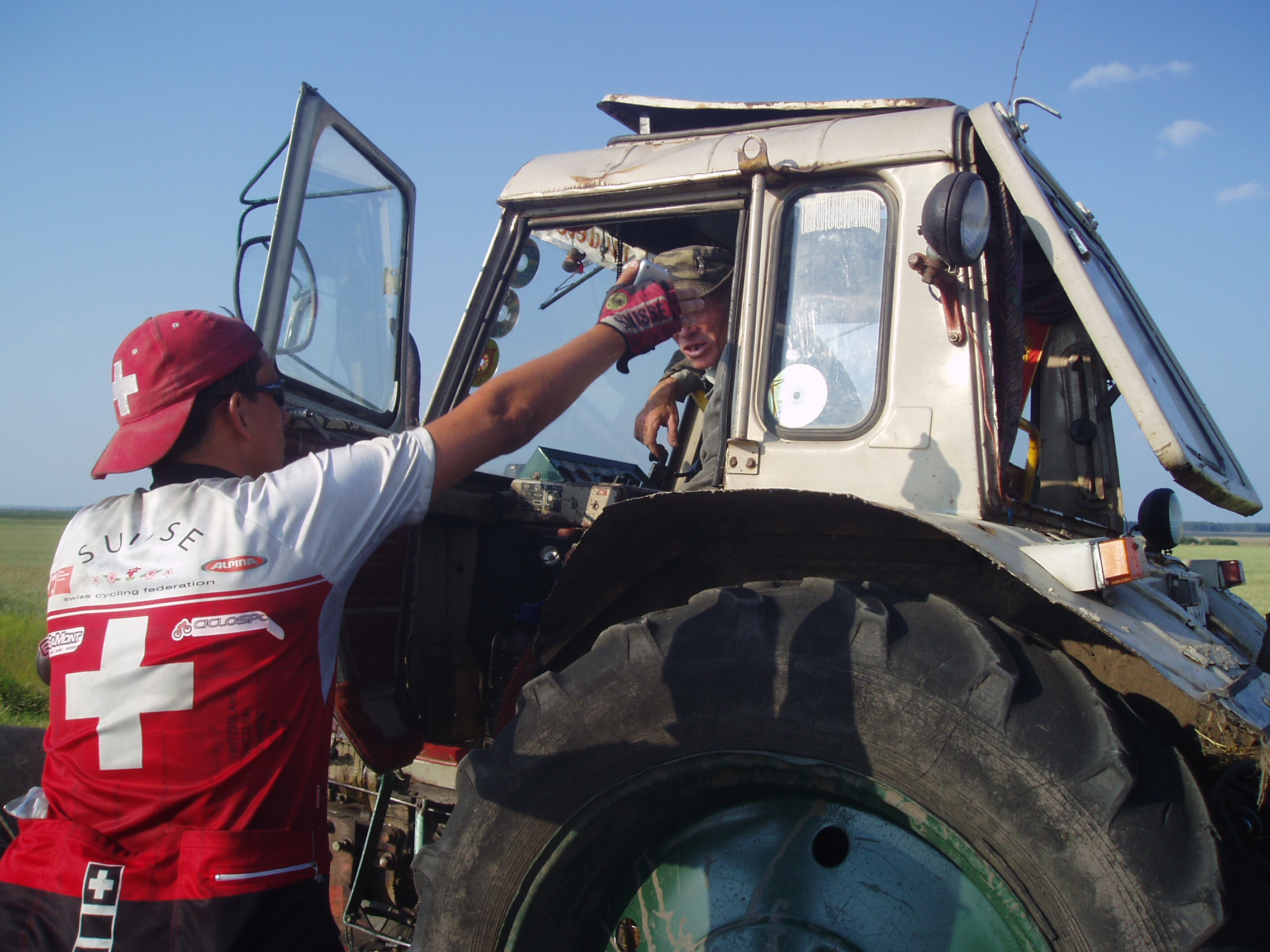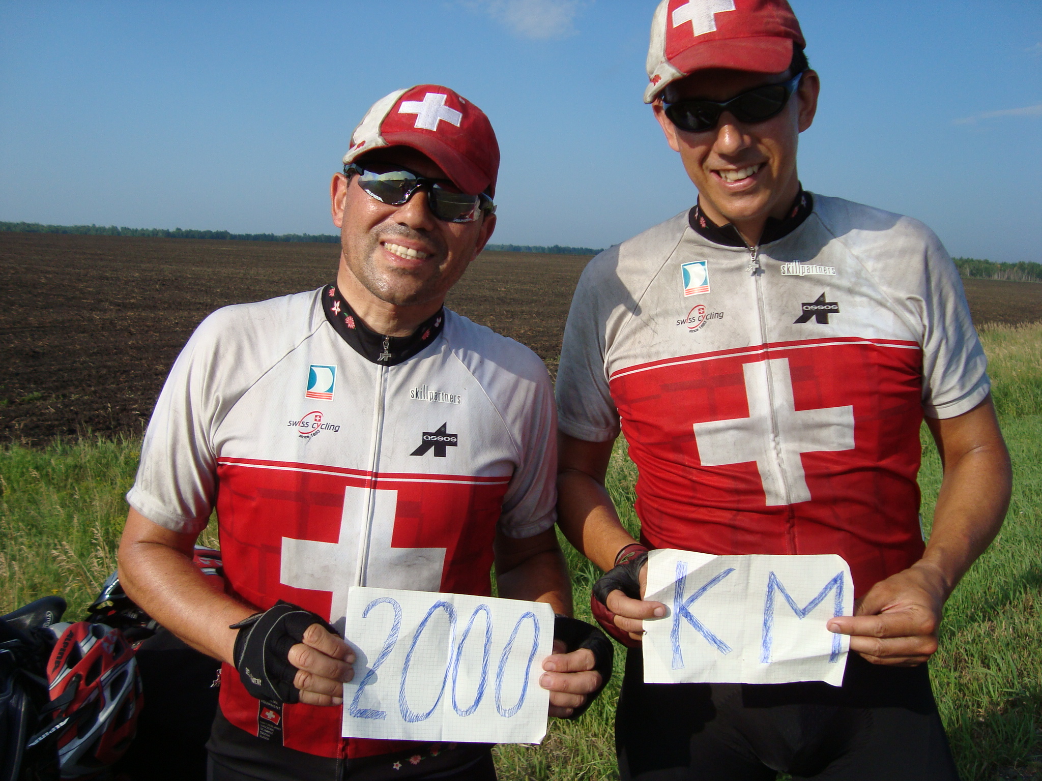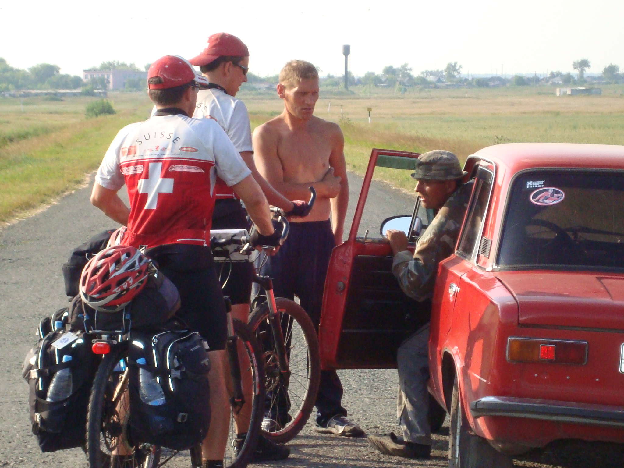 Am geplanten Tagesziel fanden wir leider nur eine verwaiste Tankstelle mit einem leeren Cola-Getränkeschrank. Als wir Einheimische nach einer Raststätte fragten erhielten wir die unterschiedlichsten Antworten von 10 bis 70 Km. Wir traten nochmals in die Pedale und erreichten nach weiteren 10 Km eine Raststätte, wo wir etwas Warmes essen konnten. Mangels Alternativen schlugen wir unser Nachtlager in einem Birkenwald unter freiem Himmel auf.