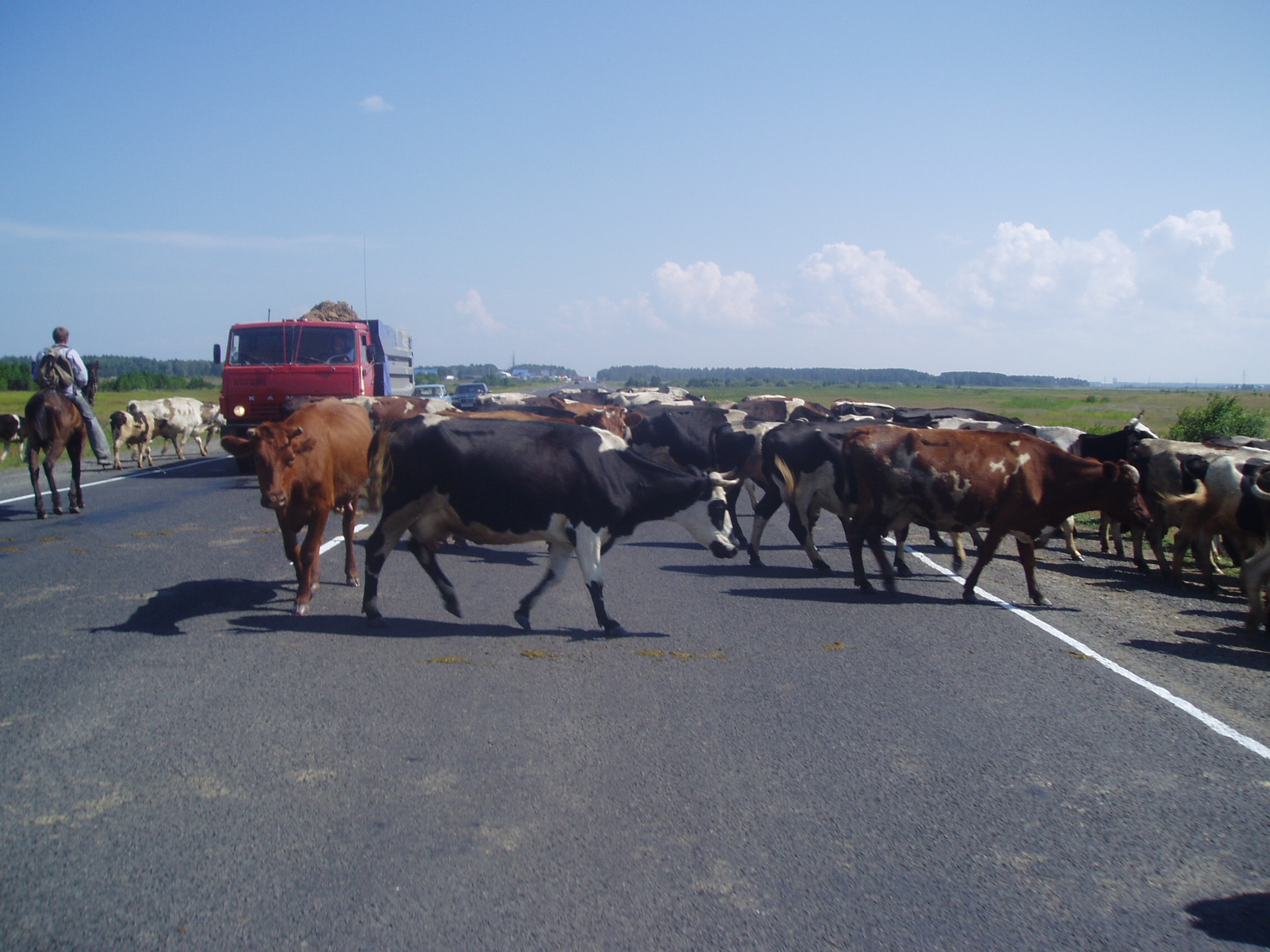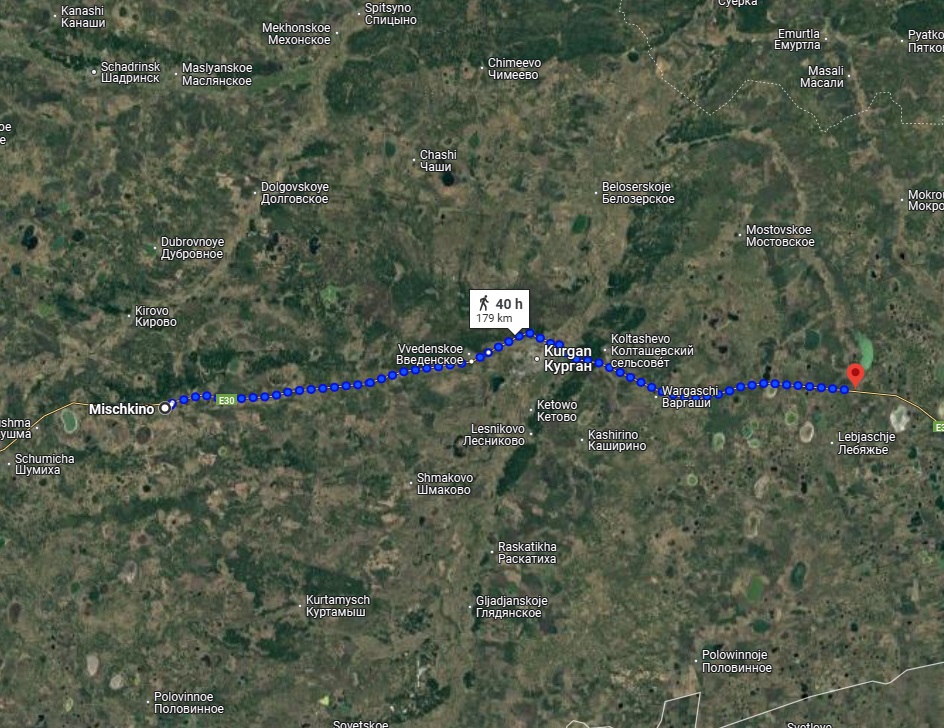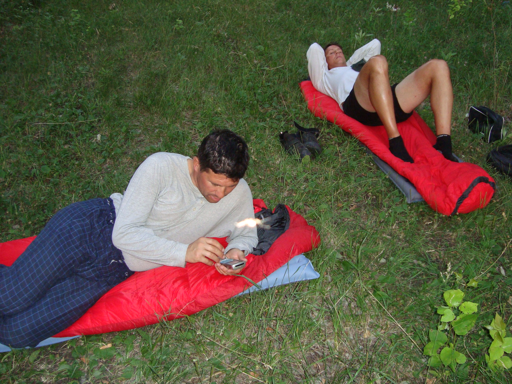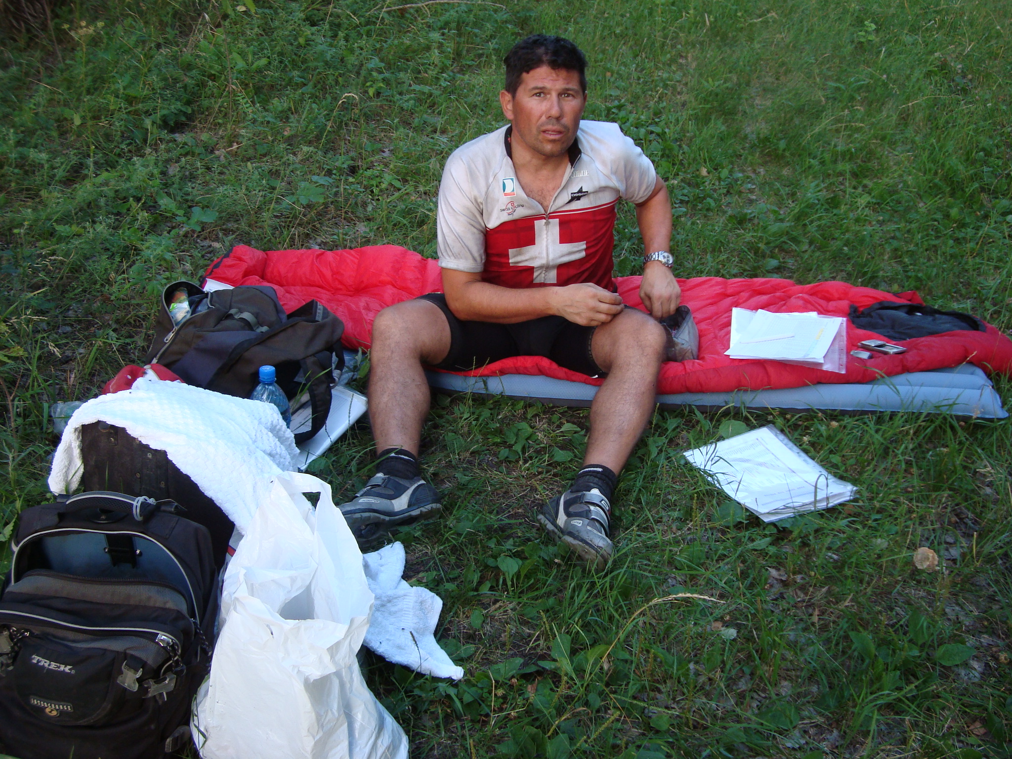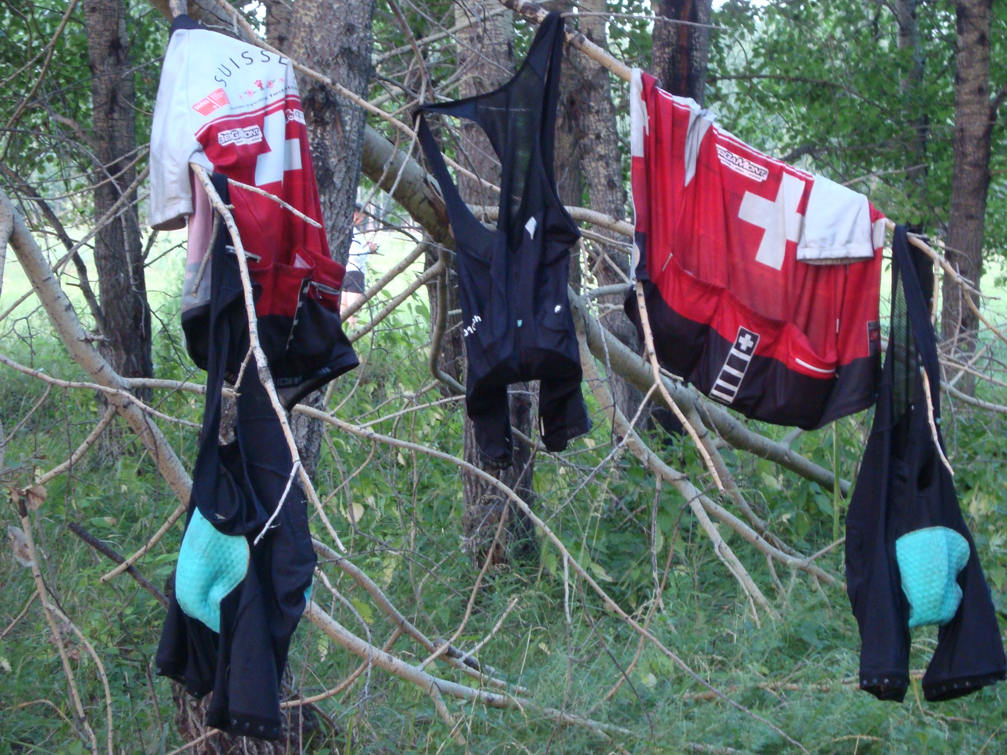 Am geplanten Tagesziel fanden wir leider nur eine verwaiste Tankstelle mit einem leeren Cola-Getränkeschrank. Als wir Einheimische nach einer Raststätte fragten erhielten wir die unterschiedlichsten Antworten von 10 bis 70 Km. Wir traten nochmals in die Pedale und erreichten nach weiteren 10 Km eine Raststätte, wo wir etwas Warmes essen konnten. Mangels Alternativen schlugen wir unser Nachtlager in einem Birkenwald unter freiem Himmel auf.
