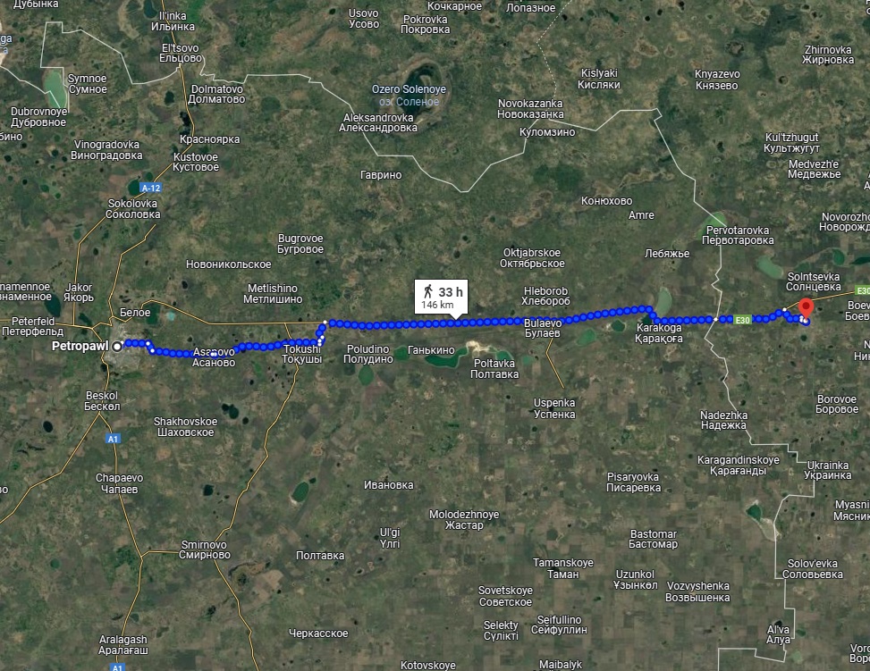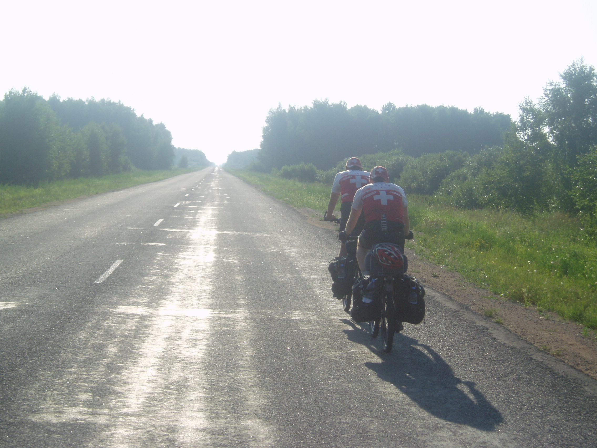 Zum Glück trafen wir heute hervorragende Bedingungen vor: gute Strasse, kein Gegenwind und flache Topographie. So rollte der Novosibirsk-Express wieder ostwärts. Nach 130 Km verliessen wir Kasachstan und rollten wieder nach Russland ein.