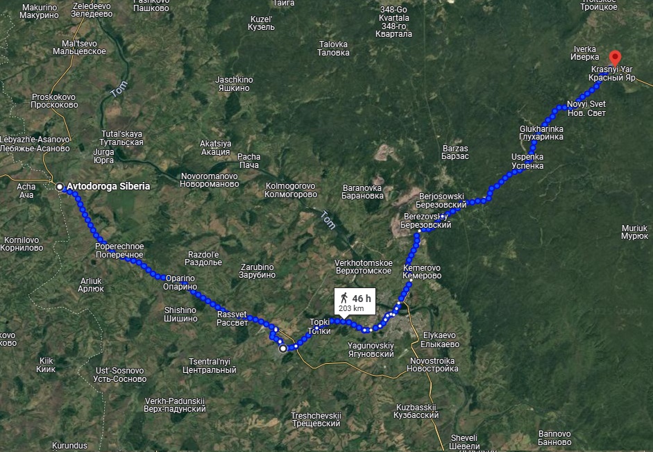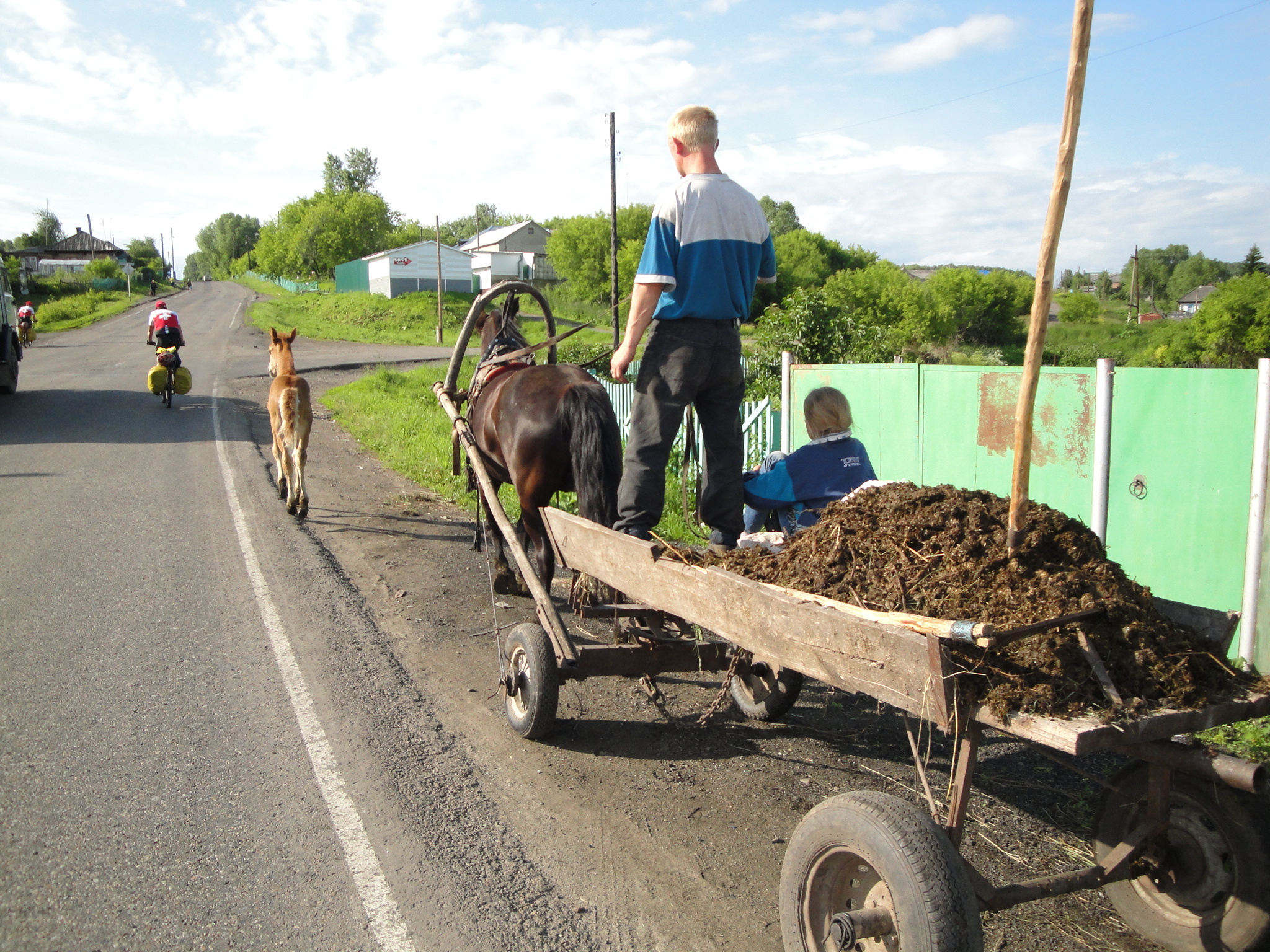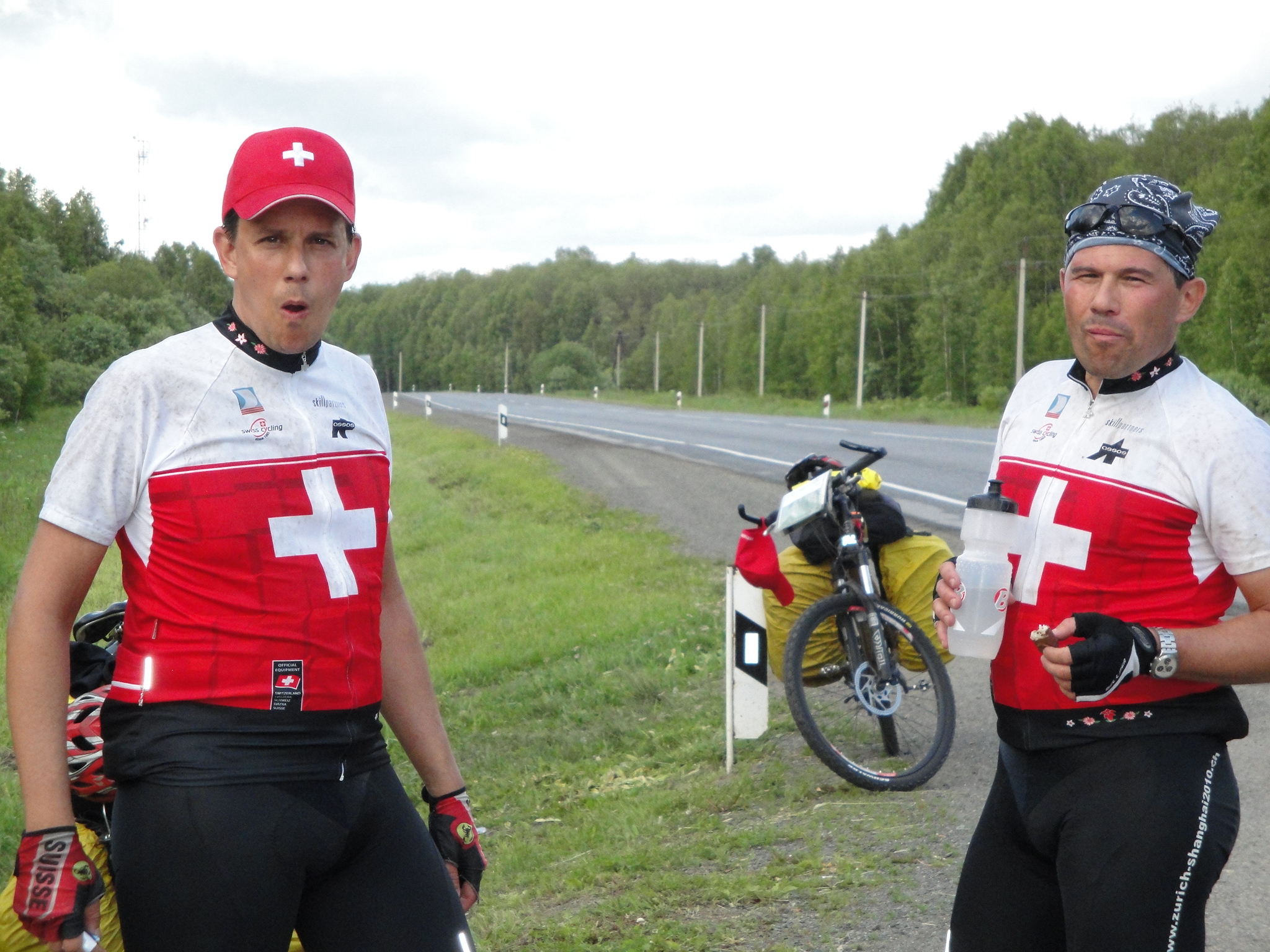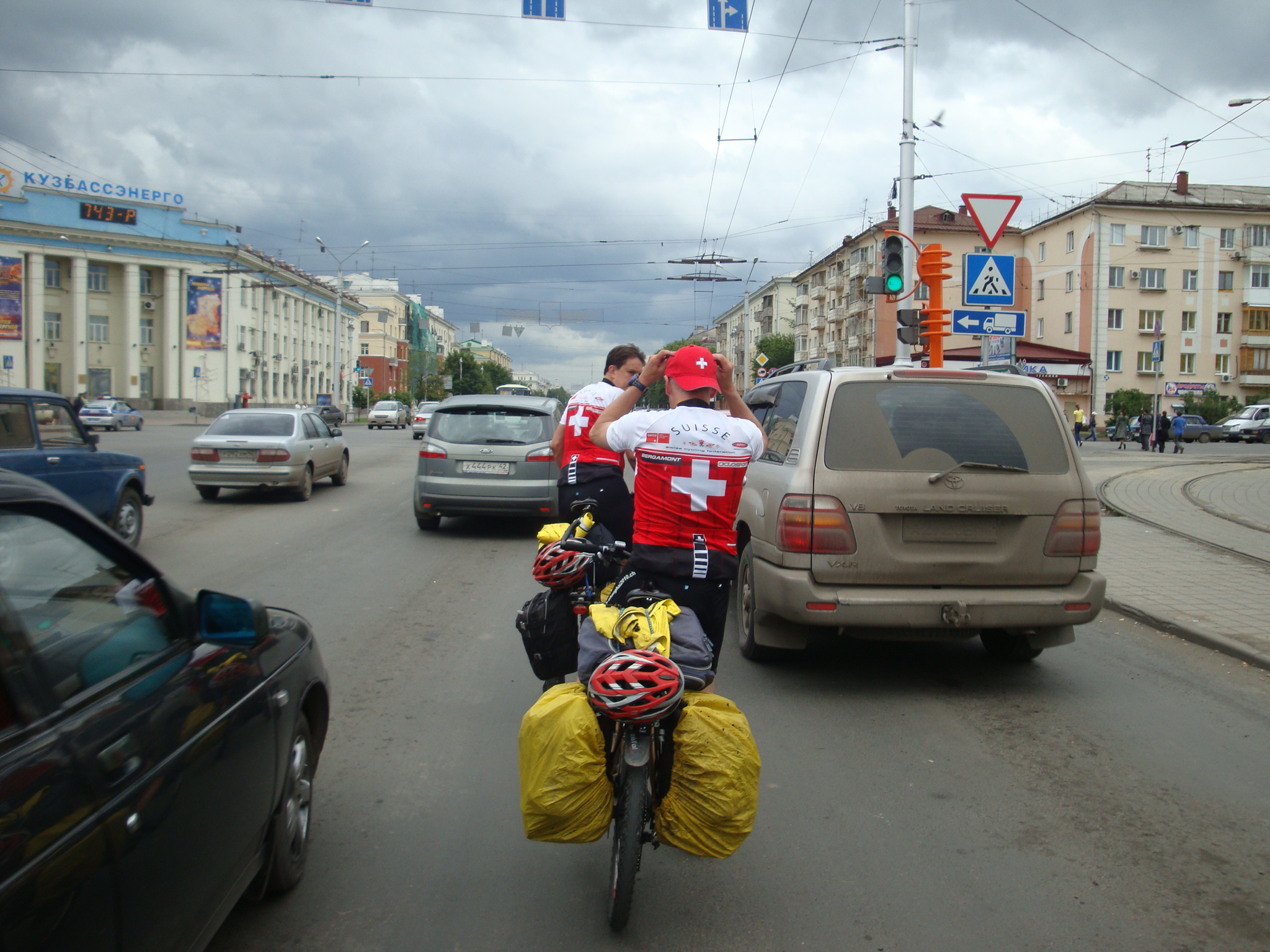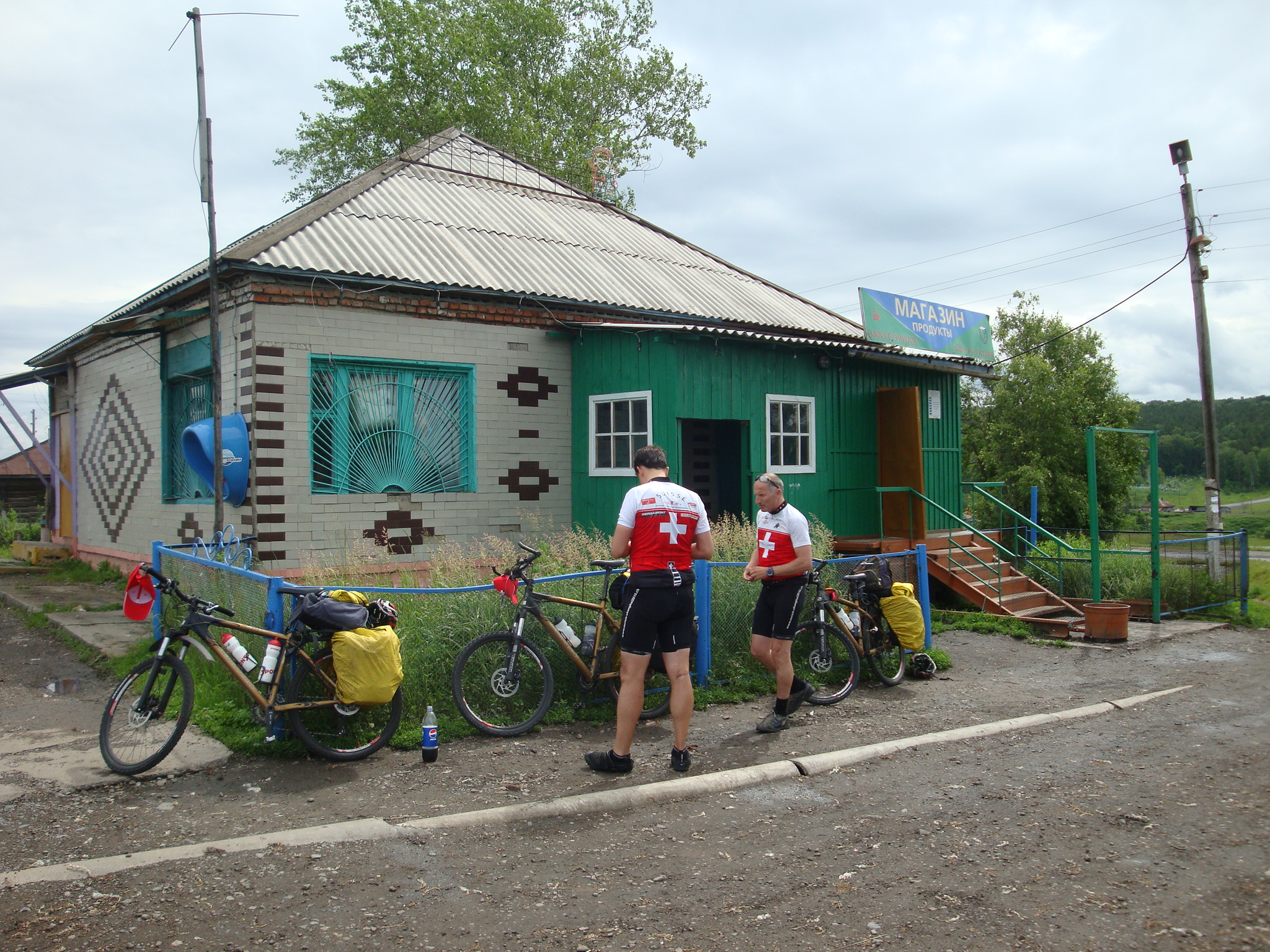 Dank der genialen Routenwahl unseres Etappenplaners Beat fuhren wir bis zum Mittag auf einer Nebenstrasse mit wenig Verkehr durch eine reizvolle Landschaft mit sibirischen Baurendörfer. Einzig der starke Gegenwind machte uns bis zum Mittagsrast in Kemerovo das Leben schwer.