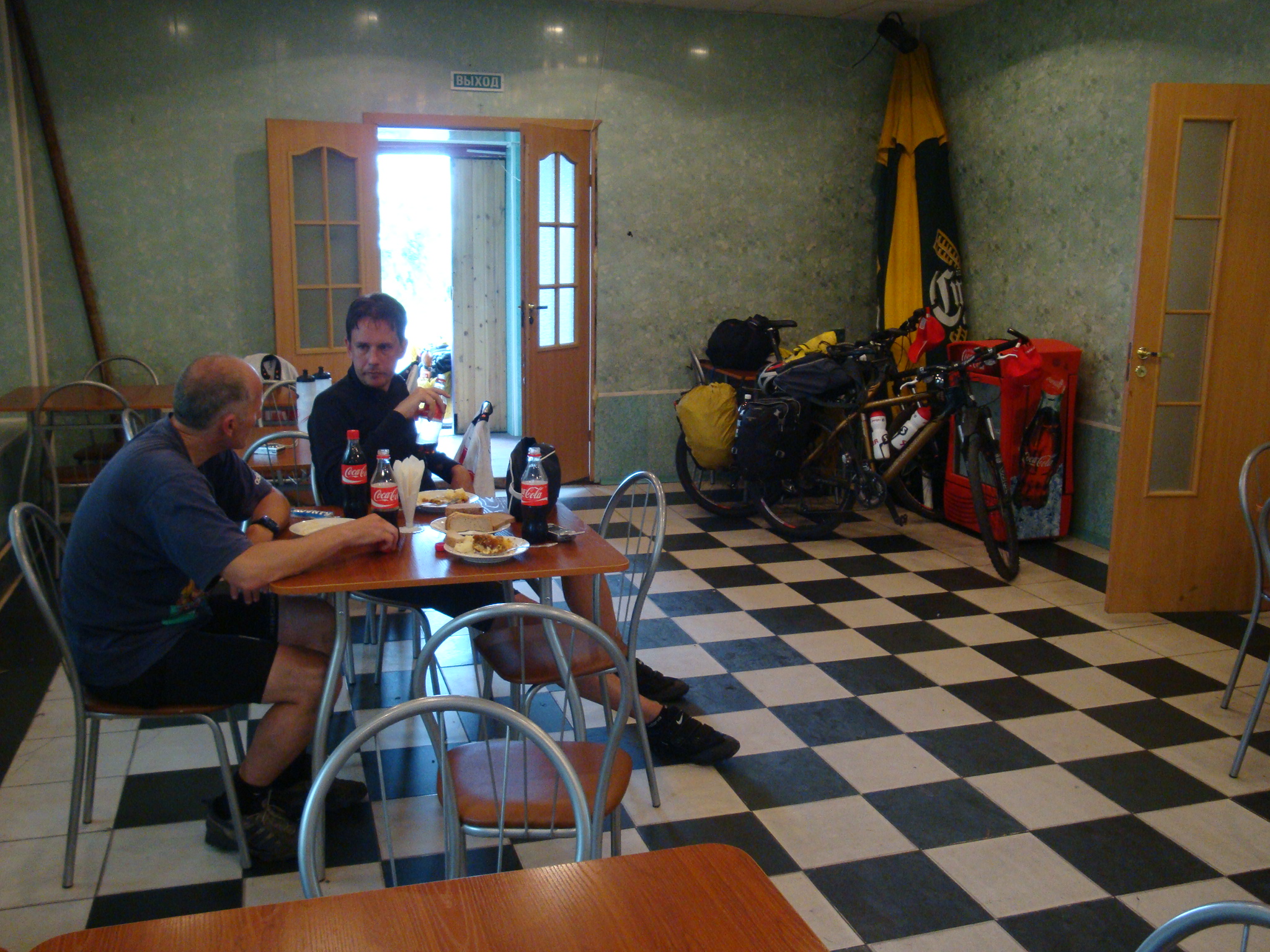 Nach 5 1/2 Std knallhartem Training im Gegenwind fuhren wir nach dem Essen nicht für möglich gehaltene Tempi. Hat uns die Wirtin etwas ins Essen getan? Ost Sibirien scheint deutlich hügeliger zu sein als was wir vor Novosibirsk erlebt haben, zumindest heute war ein stetiges auf und ab.
