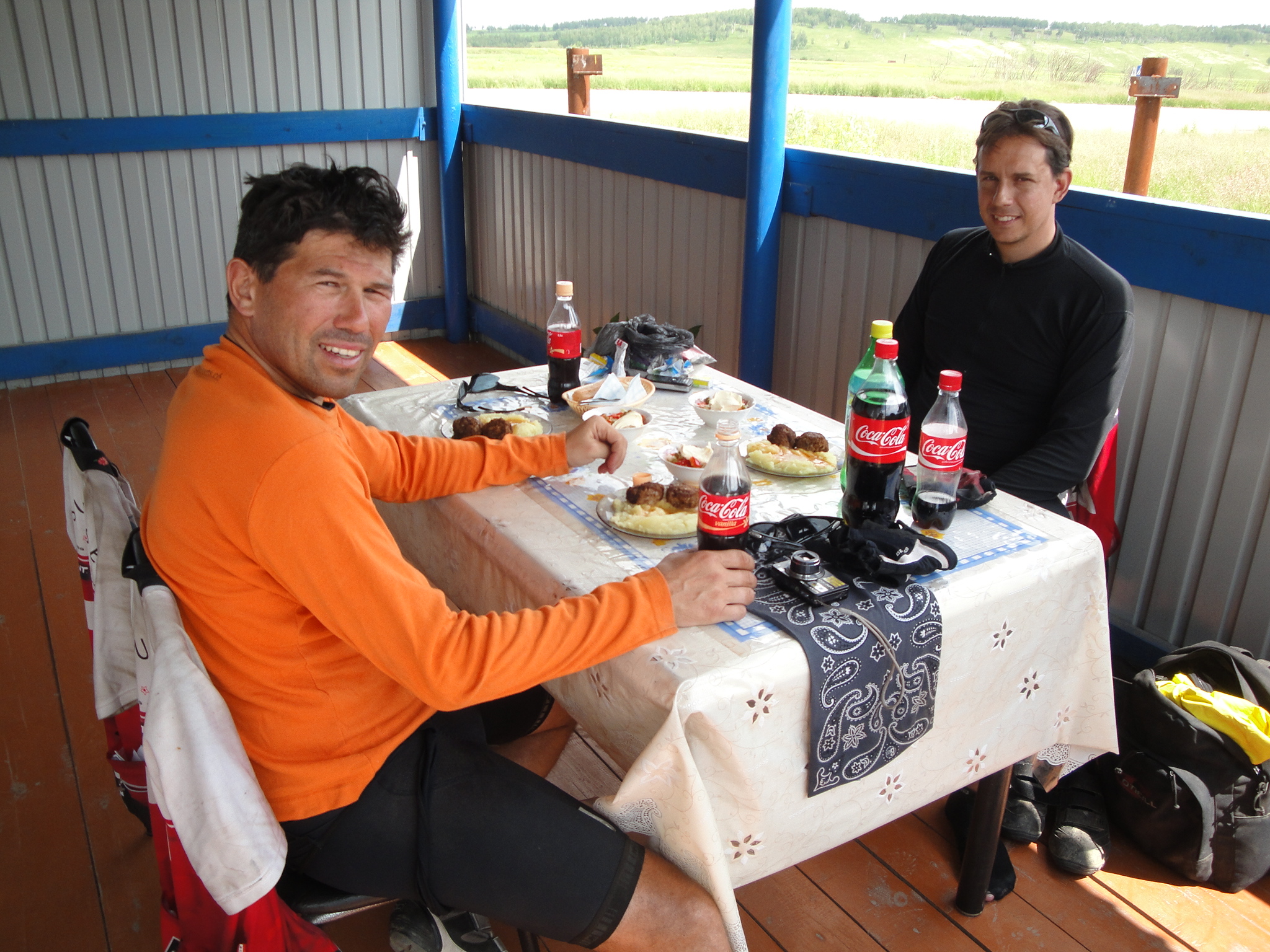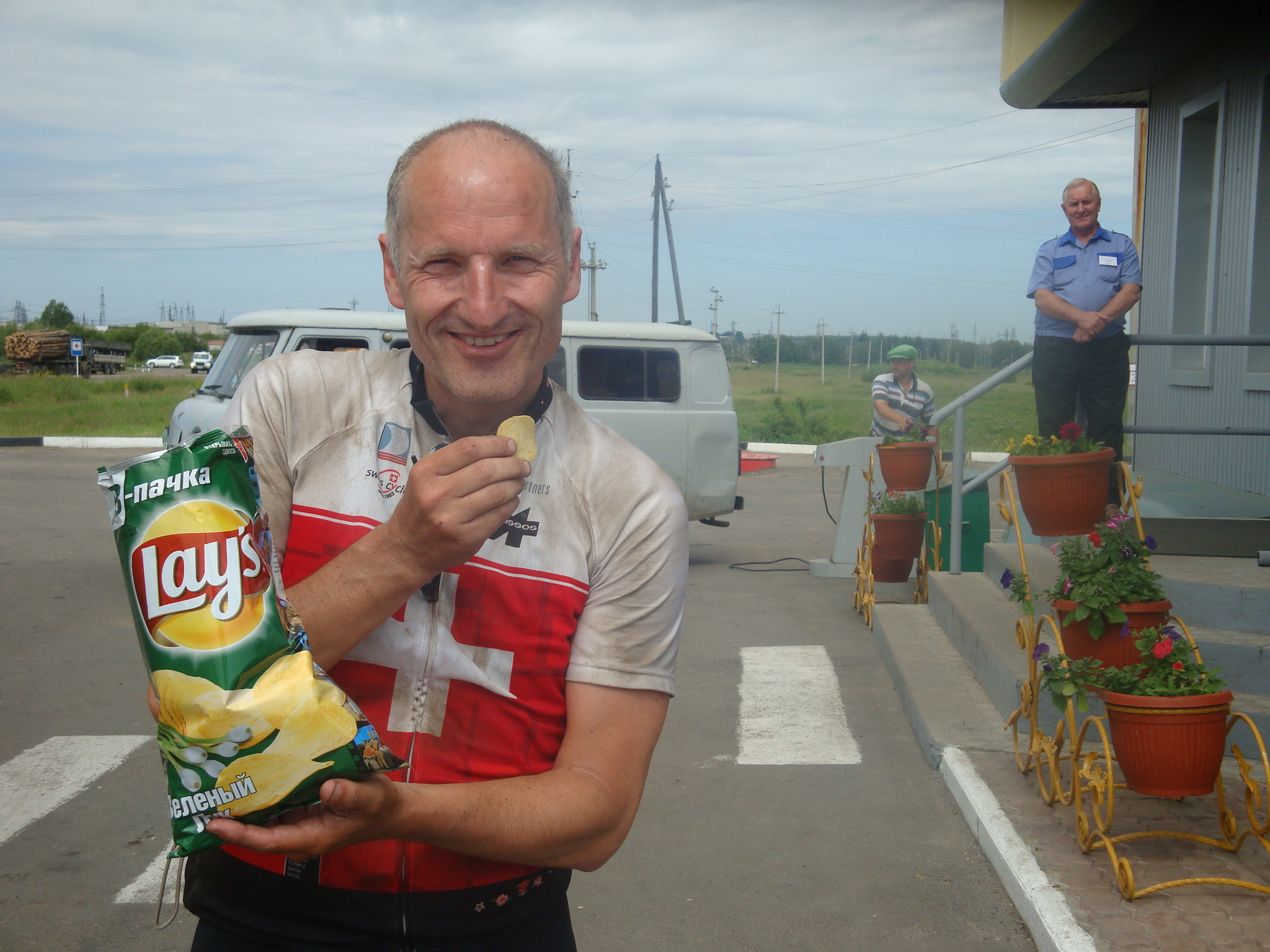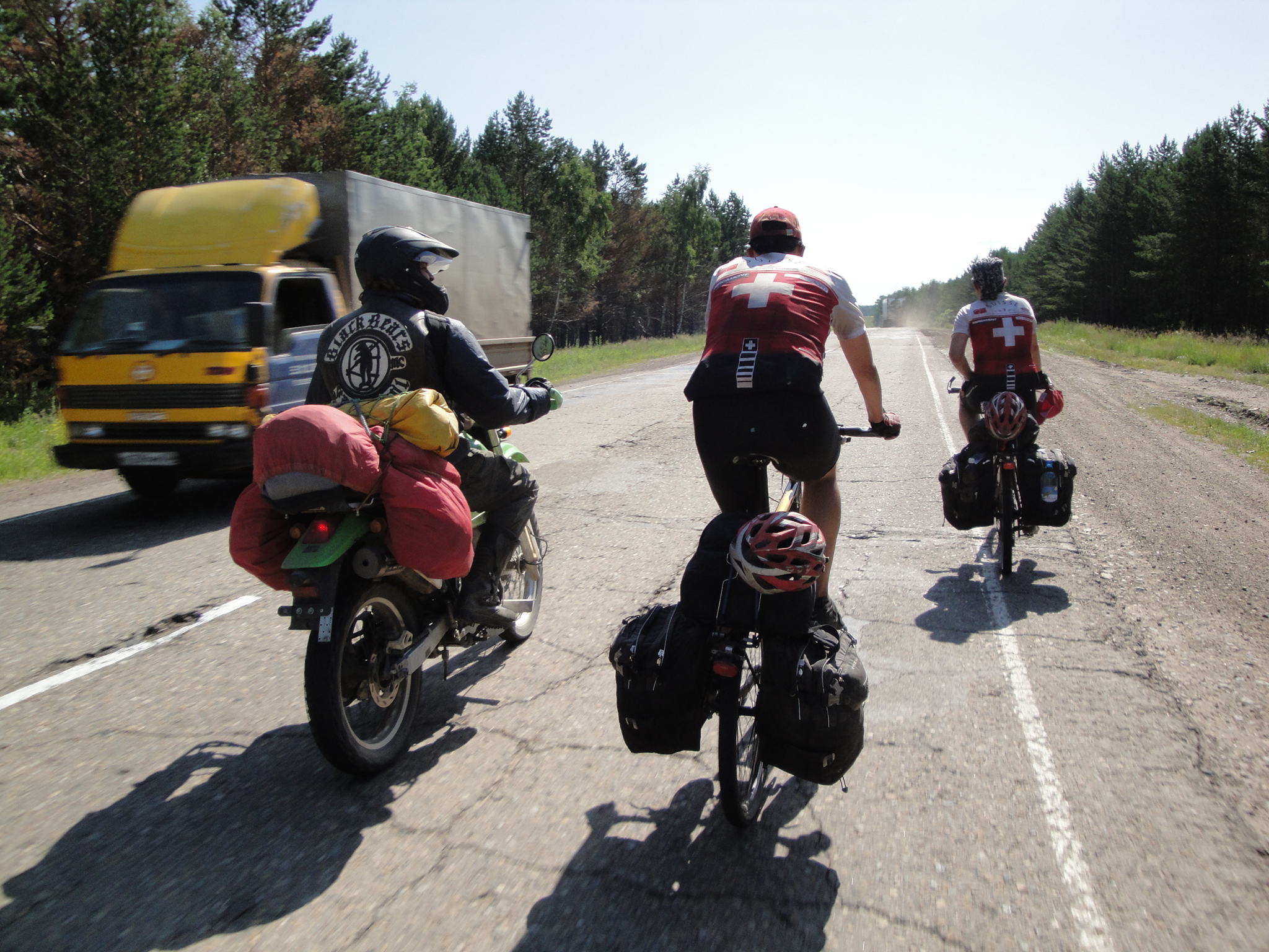 Heute war ein ganz normaler Biketag: sonnig und heiss, Asphalt statt Schotter, nach dem Mittagessen wurden wir zum Spielball des Gegenwinds, bei Matt mussten wir zwei Notspeichen ersetzen und am Tagesziel in Cheremkhovo hatten wir 189 Km abgespult.