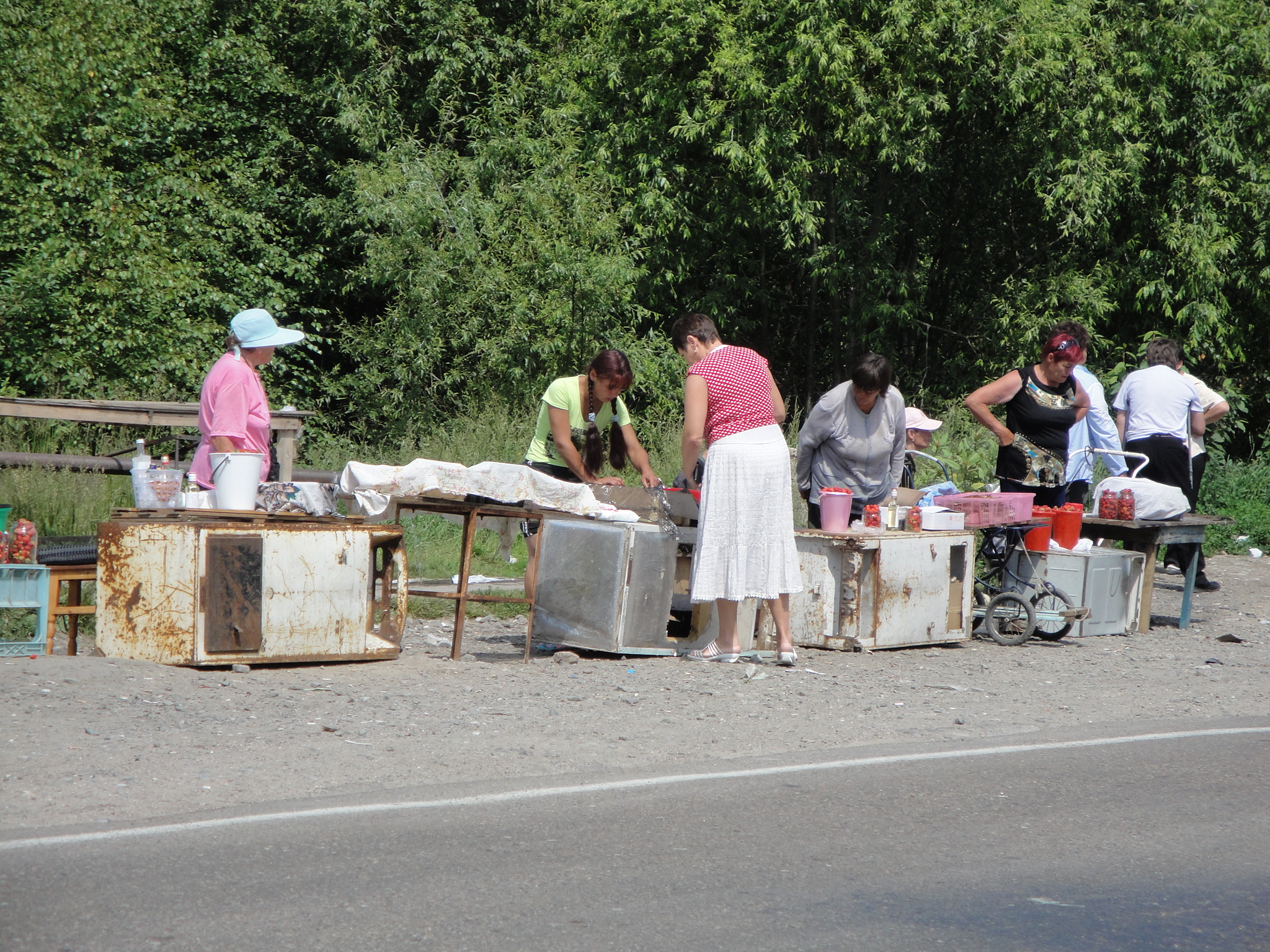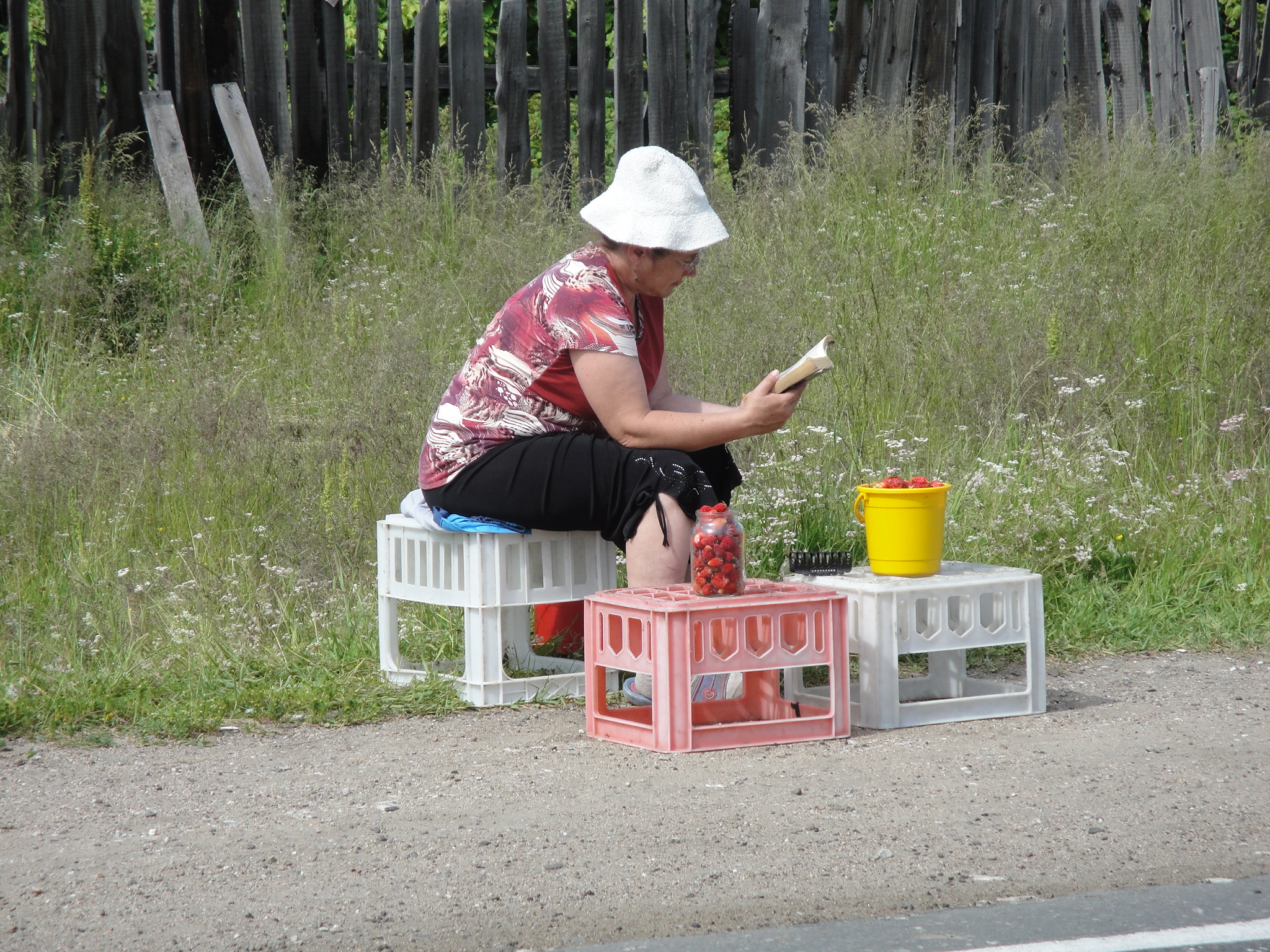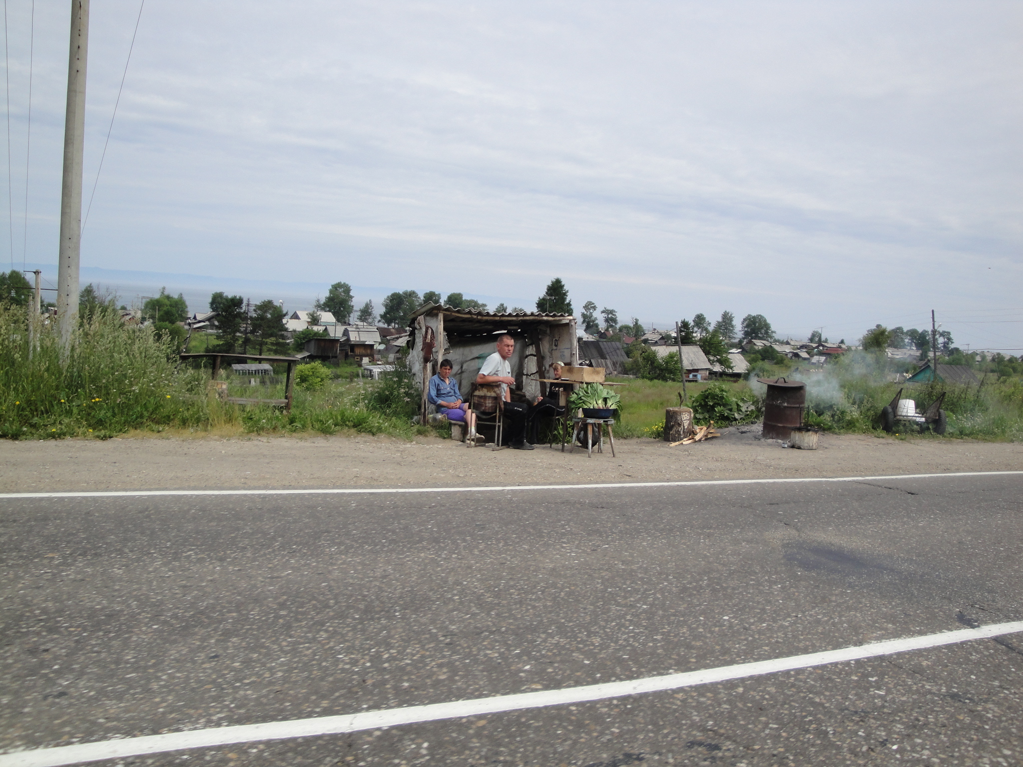 Seit Irkutsk sind wir auf der M55 unterwegs. Heute war ein lockerer Bikeausflug entlang dem Baikalsee. Immer wieder begegneten wir am Strassenrand einfachen Verkaufsständen. Angeboten werden frische und geräucherte Fische aus dem See sowie Erdbeeren und Heidelbeeren aus den umliegenden Wäldern.