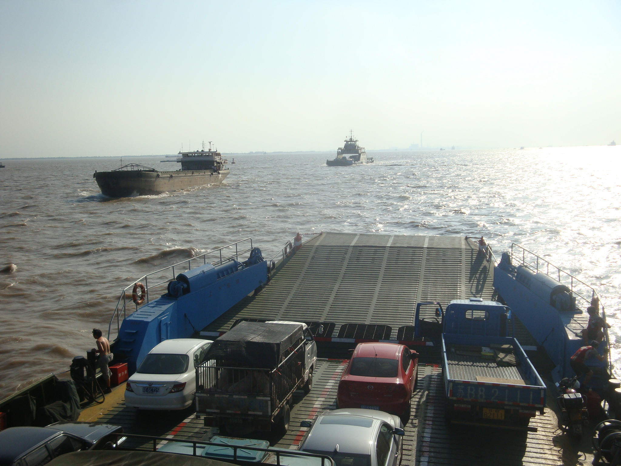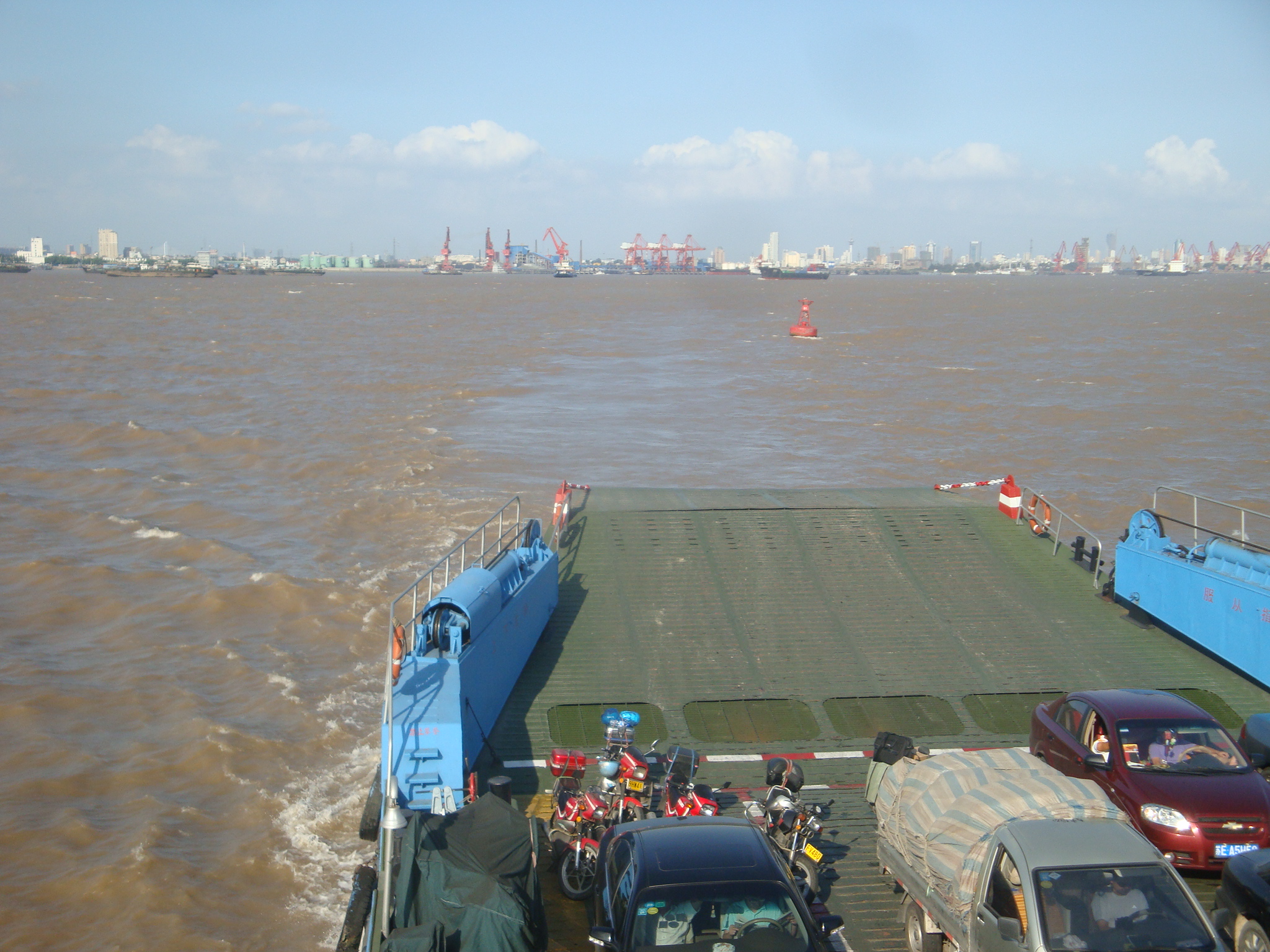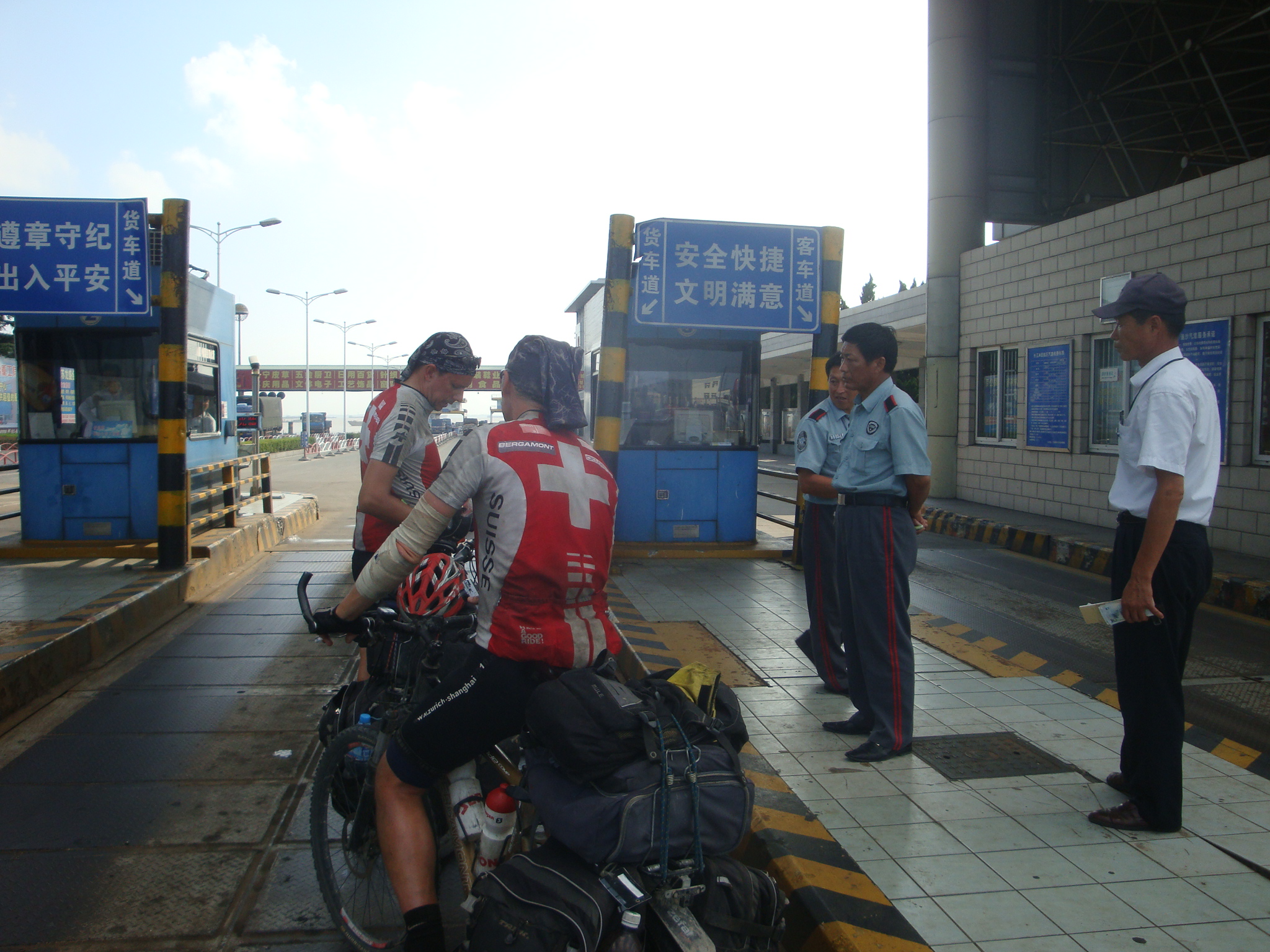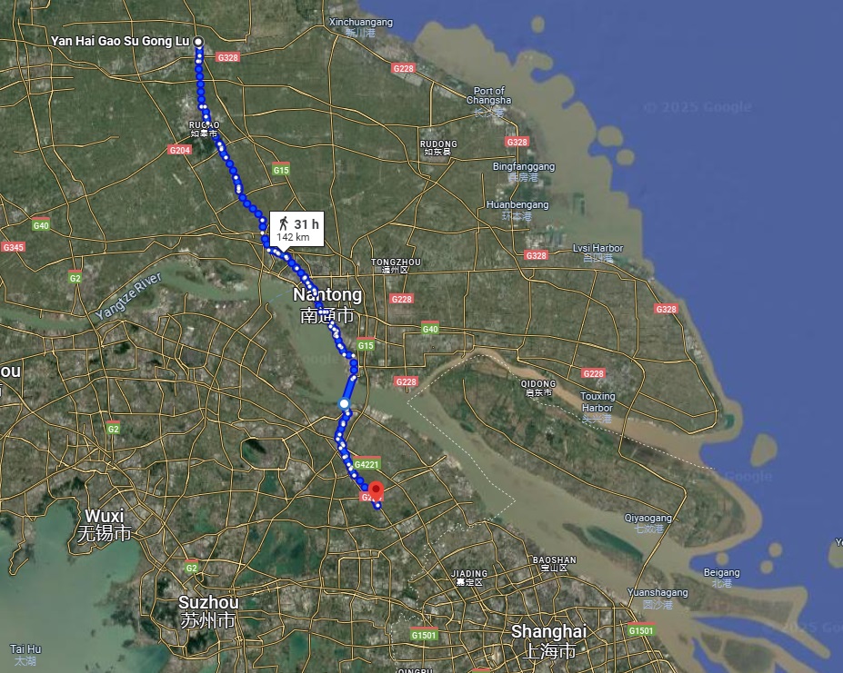 Der Himmel war wolkenlos und die Temperatur bereits bei 33 Grad. Aus dem klimatisierten Hotel kommend hatten wir schon Schweissperlen auf der Stirn ohne überhaupt einen Kilometer gefahren zu sein. Auf der bereits heimischen G204 rollten wir zügig gegen Shanghai zu. Erstmals war unser grosses Ziel auf den Verkehrstafeln angeschrieben.