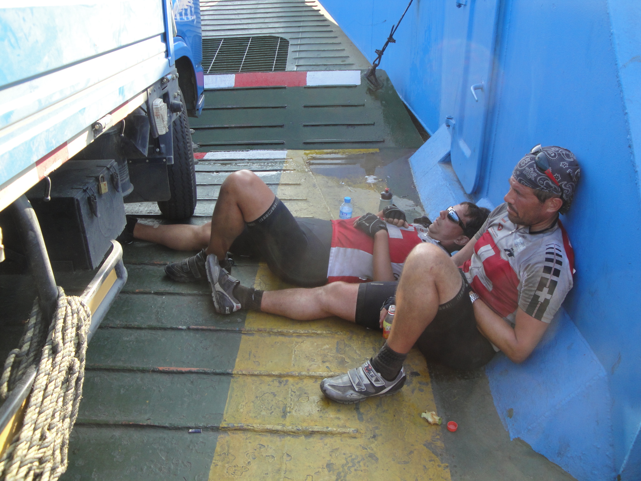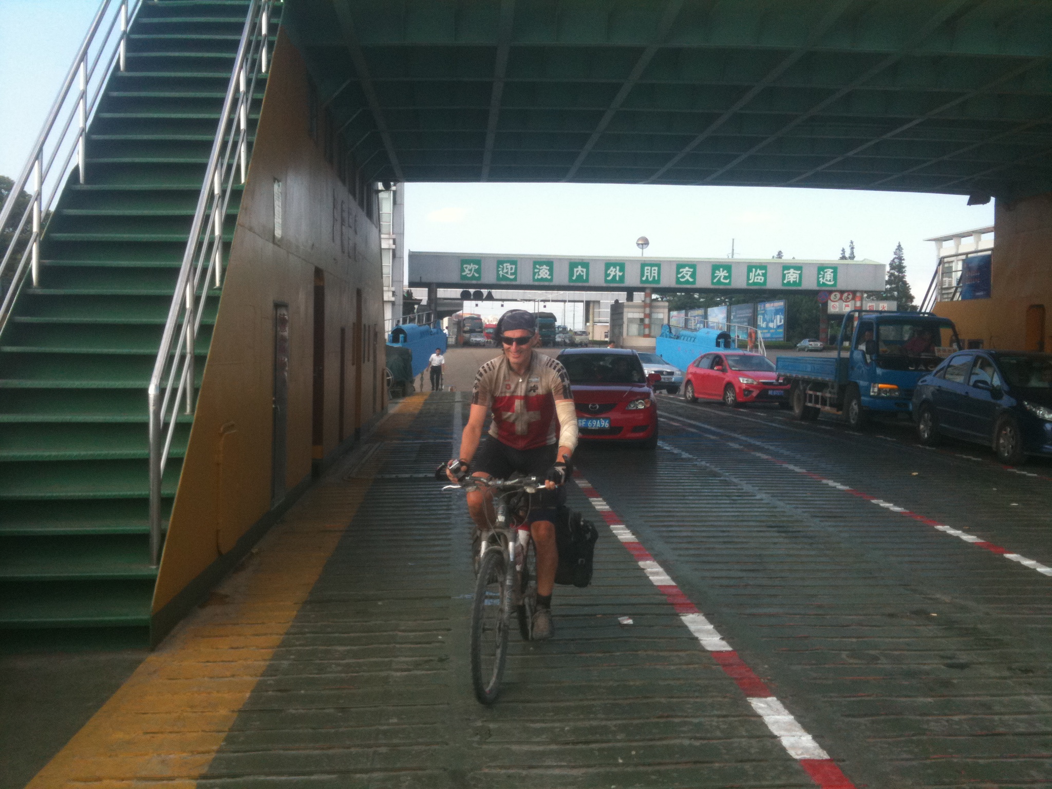 Da die einzige Strasse die über diesen Meeresarm führt ein Expressway ist den wir mit den Bikes nicht benützen dürfen und es keine Pedalos zu mieten gab, waren wir gezwungen die Fähre zu nehmen. Die Fahrt dauerte ca. 30 Minuten.