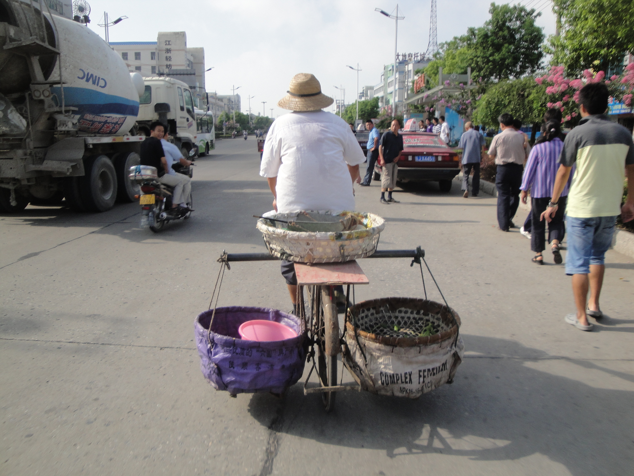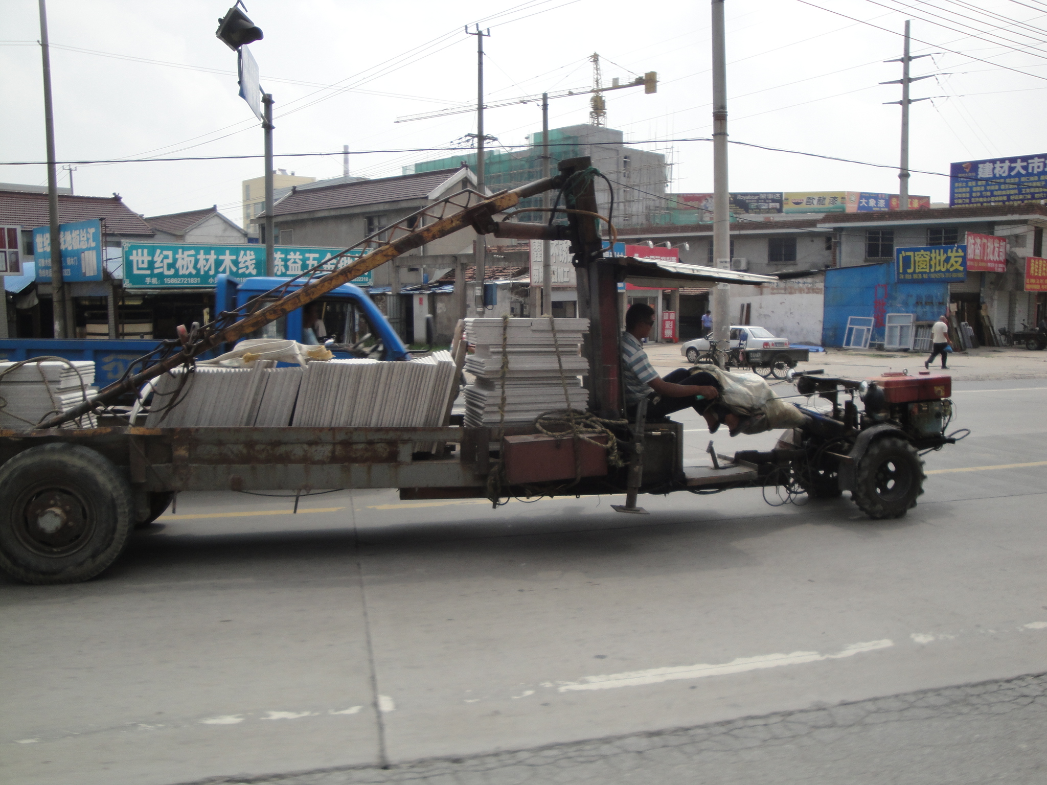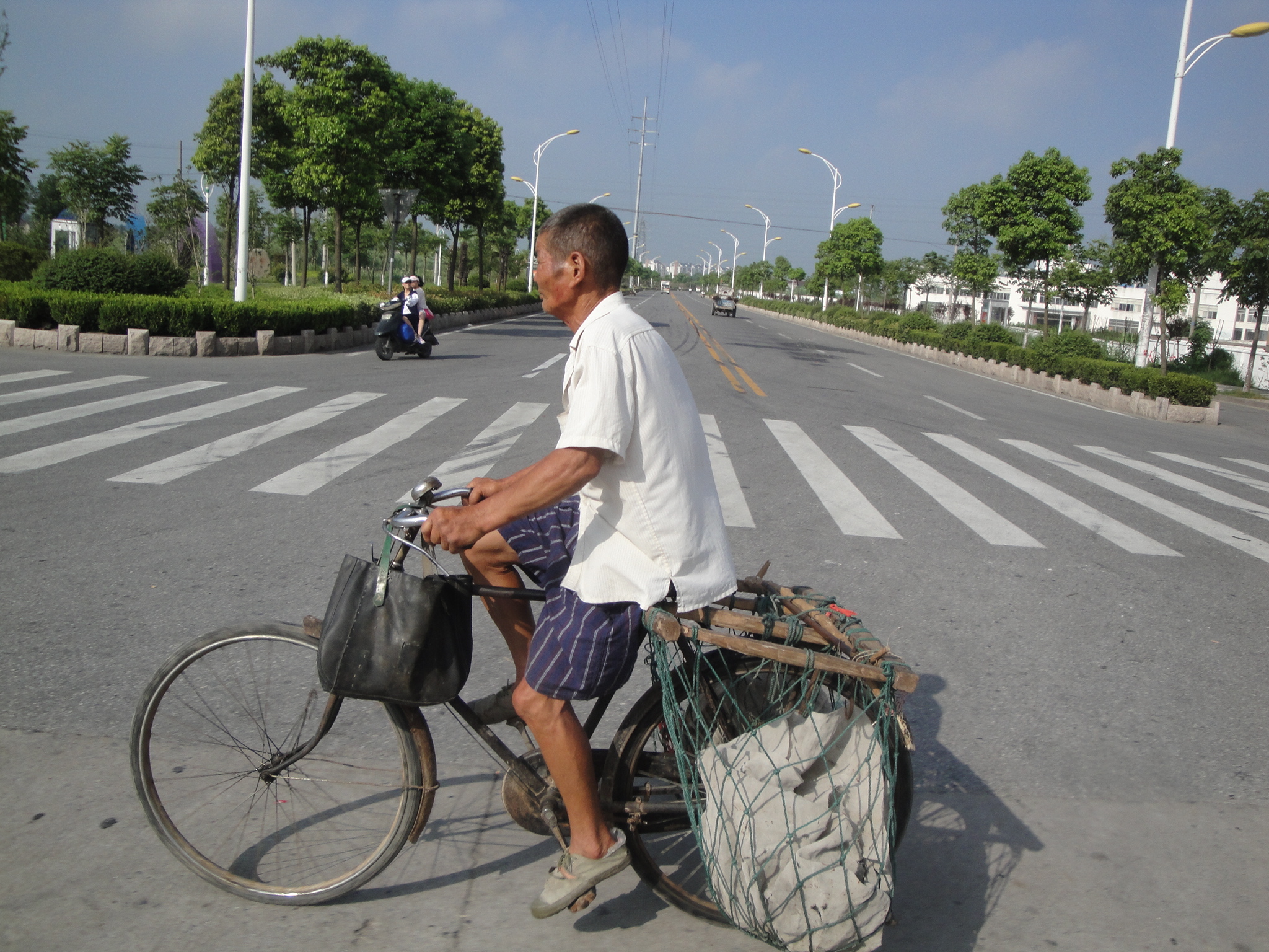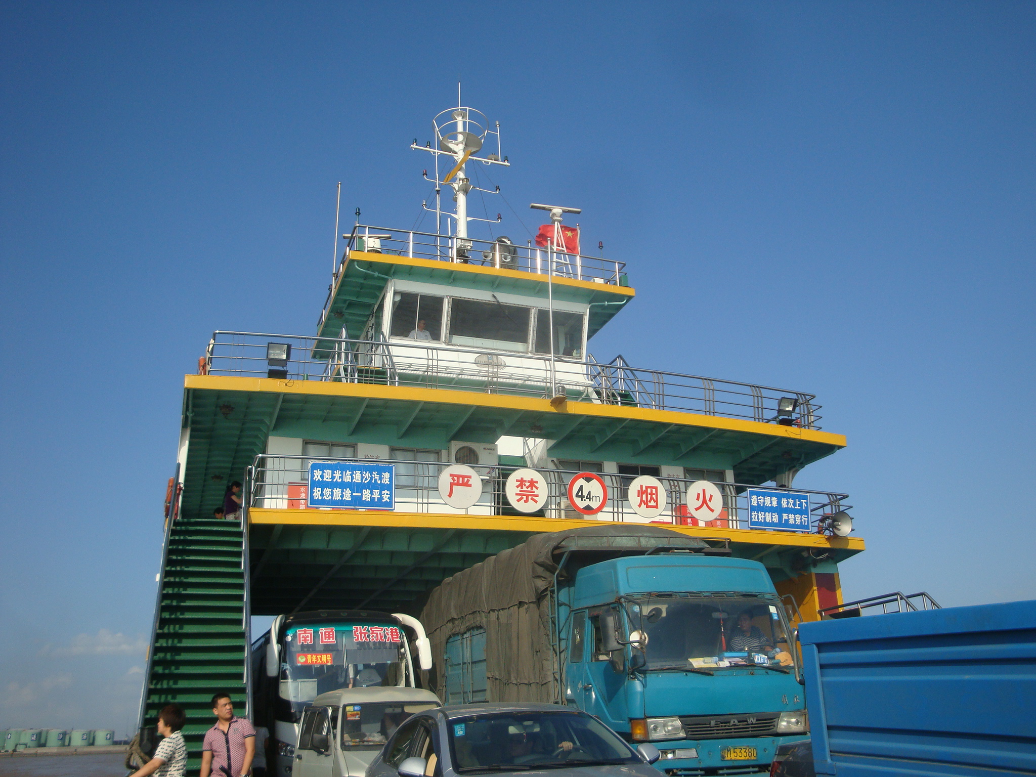Bei unseren gewohnten Stundenhalts hielten wir jeweils Ausschau nach den Kühltruhen mit Schattenplatz am Strassenrand. Wir entschieden uns weiter als das ursprünglich geplante Tagesziel Nantong zu fahren und den Meeresarm nördlich von Shanghai bereits heute noch zu überqueren.