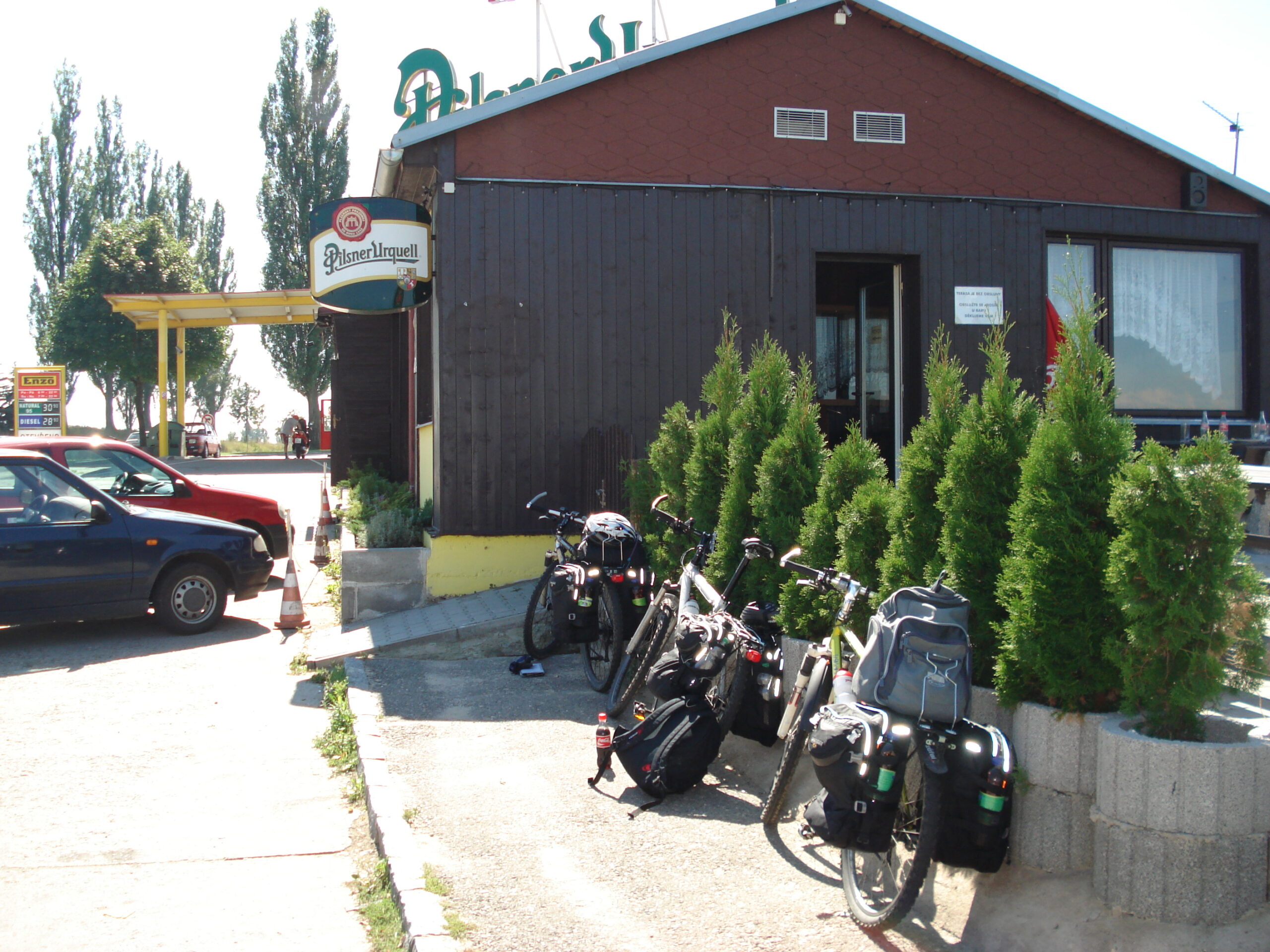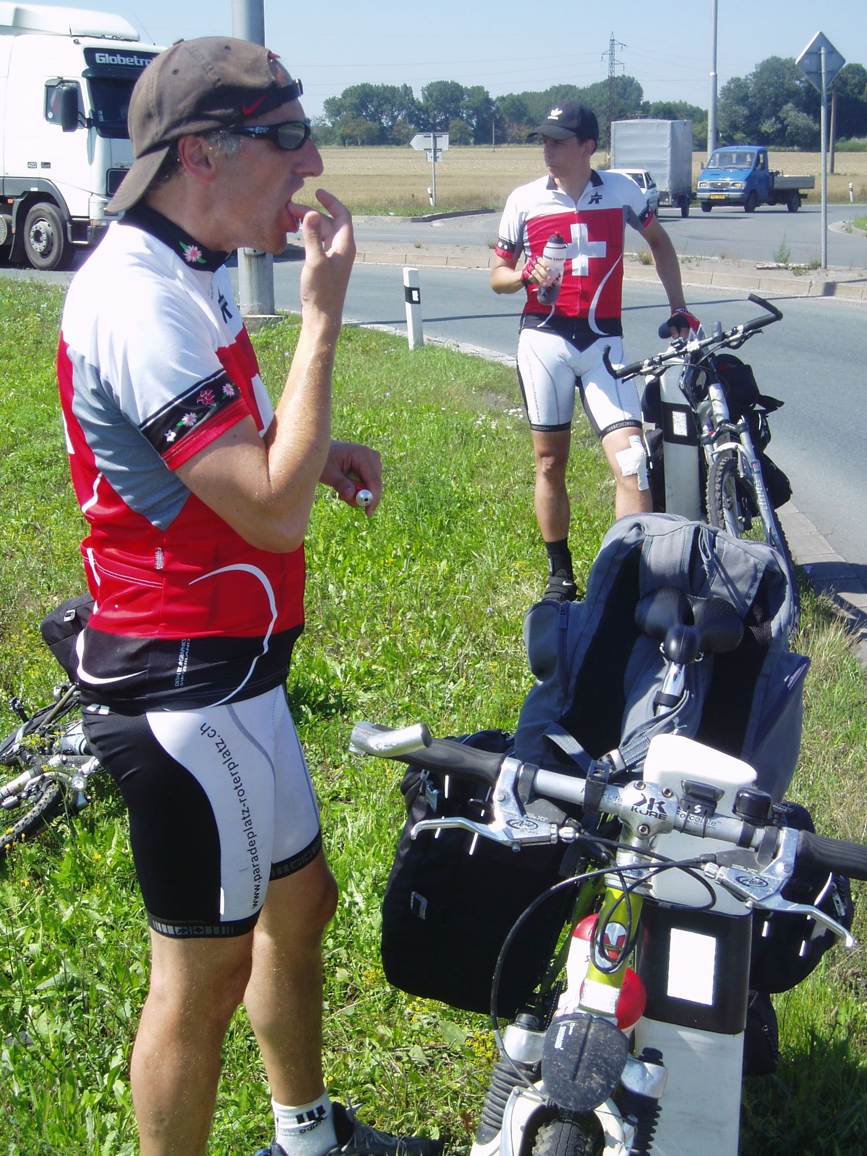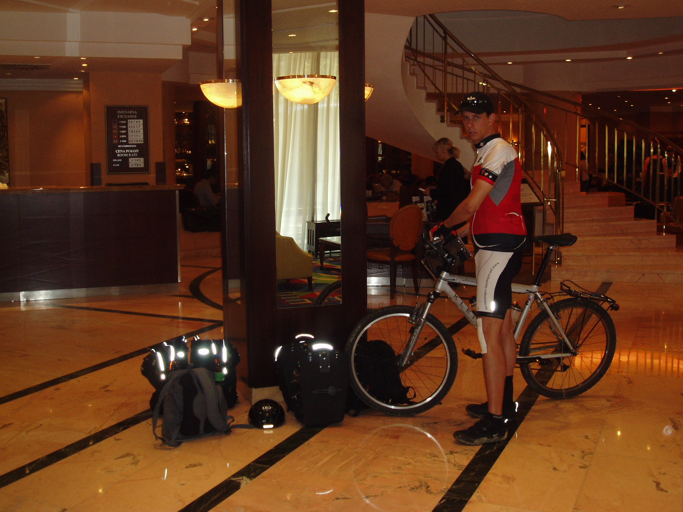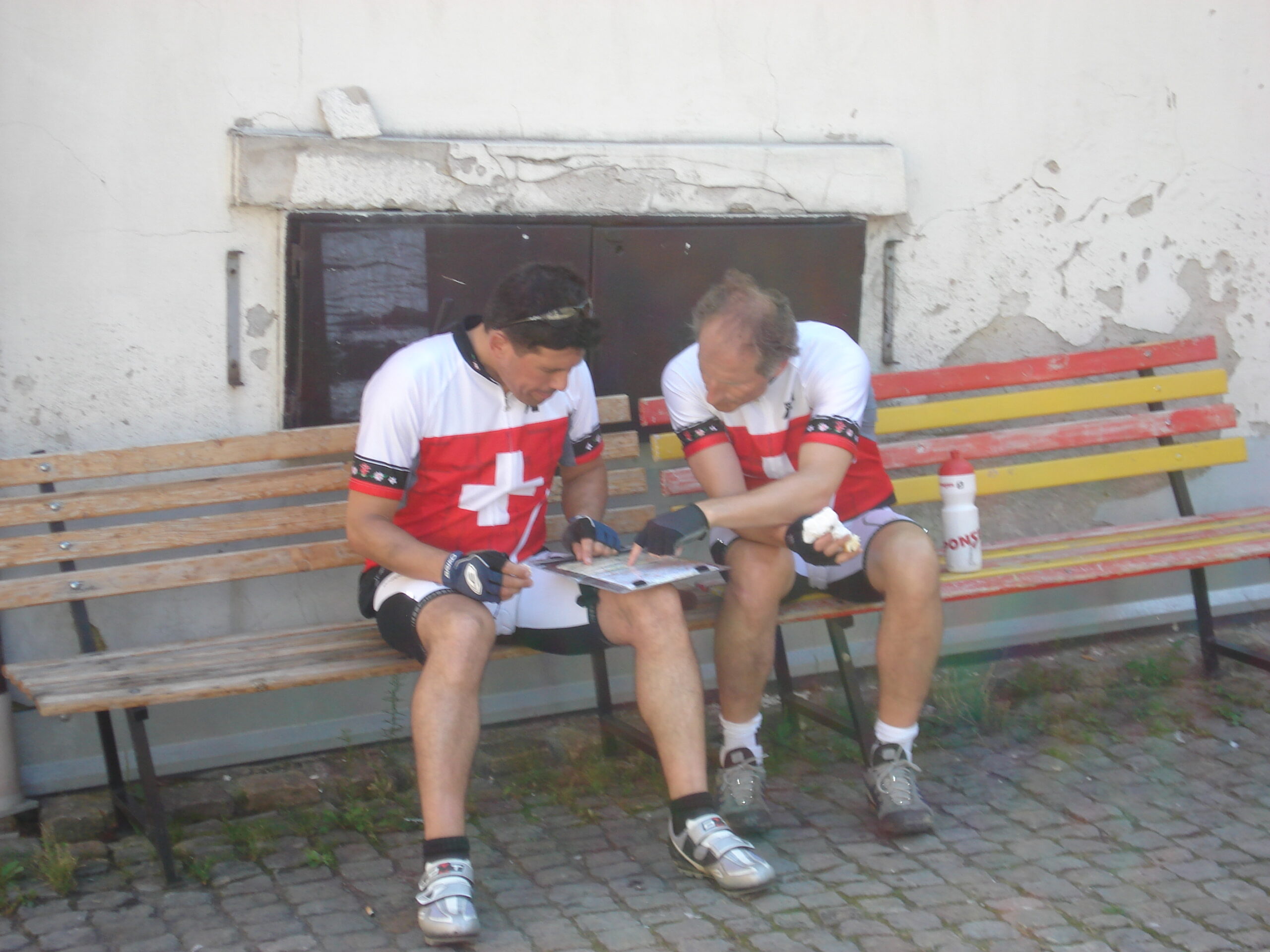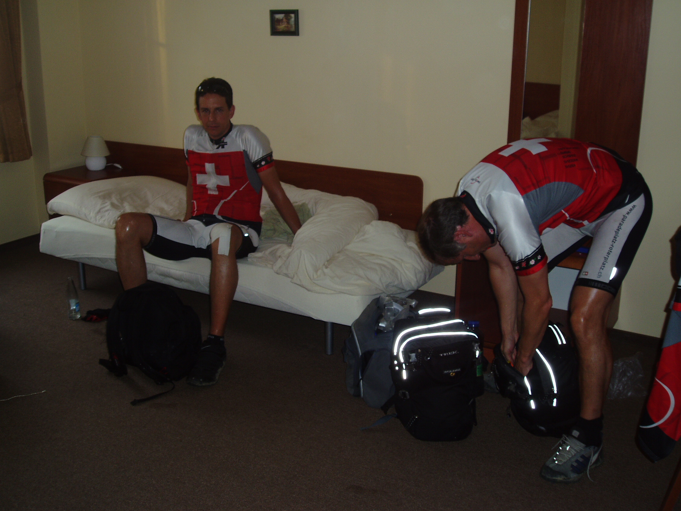 Heute sind wir das erste Mal ohne Regenjacke und Beinlinge an den Start. Bevor wir losrollen konnten, gab es schon die ersten logistischen Hürden zu überwinden. Da wir in der Geschichte des Hotels die ersten Gäste waren die mit Bikes angekommen sind und diese in einer Abstellkammer im 2. UG zuerst gesucht werden mussten.