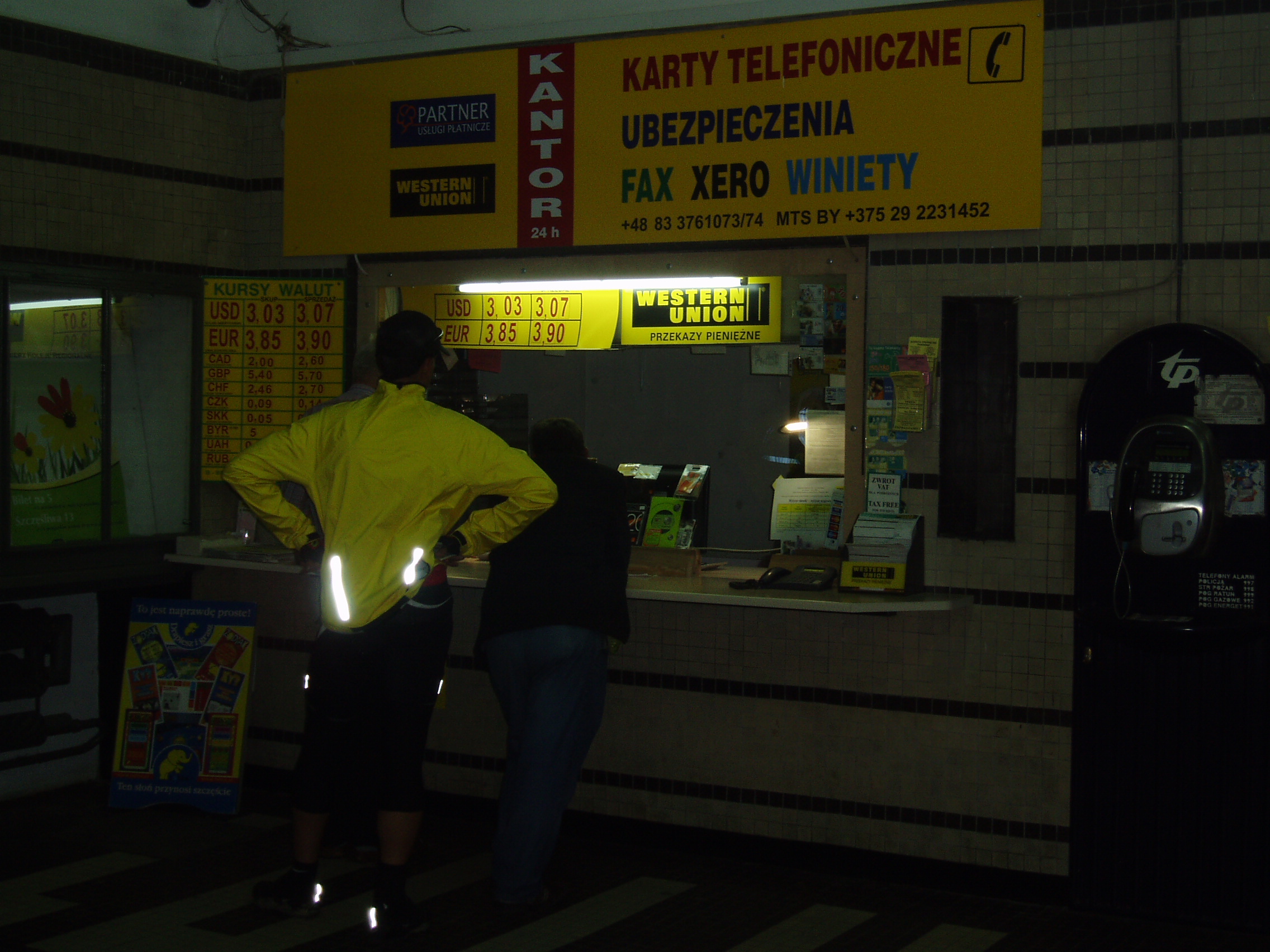 Nachdem verschiedene Automobilisten unsere Anfrage ablehnten, mussten wir uns für die Variante mit der Eisenbahn entscheiden. Wir lösten 3 Tickets für das 7 km entfernte Etappenziel Brest und gingen etwas Essen, denn der nächste Zug fuhr erst um 21:05 Uhr. Wir waren nicht falsch in der Annahme, dass unser Abenteuer erst an der Russischen Grenze beginnen würde! Was wir am Bahnhof und im Grenz-Zug erlebten, versetzte uns in einen Spionage Thriller aus der Zeit des kalten Krieges und war an Spannung und Nervenkitzel nicht zu übertreffen!!