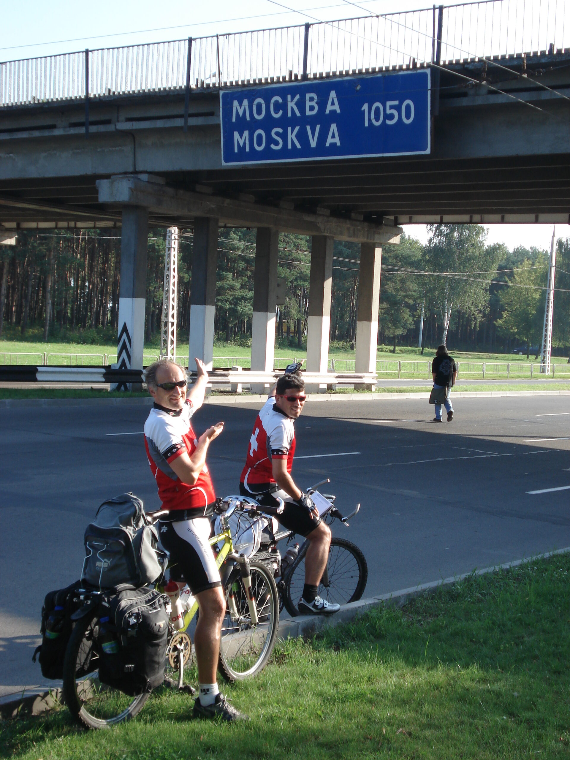 Kurz nach der Stadtgrenze von Brest sahen wir zum ersten Mal ein Schild mit unserem grossen Ziel „Moskva 1’050 Km“!