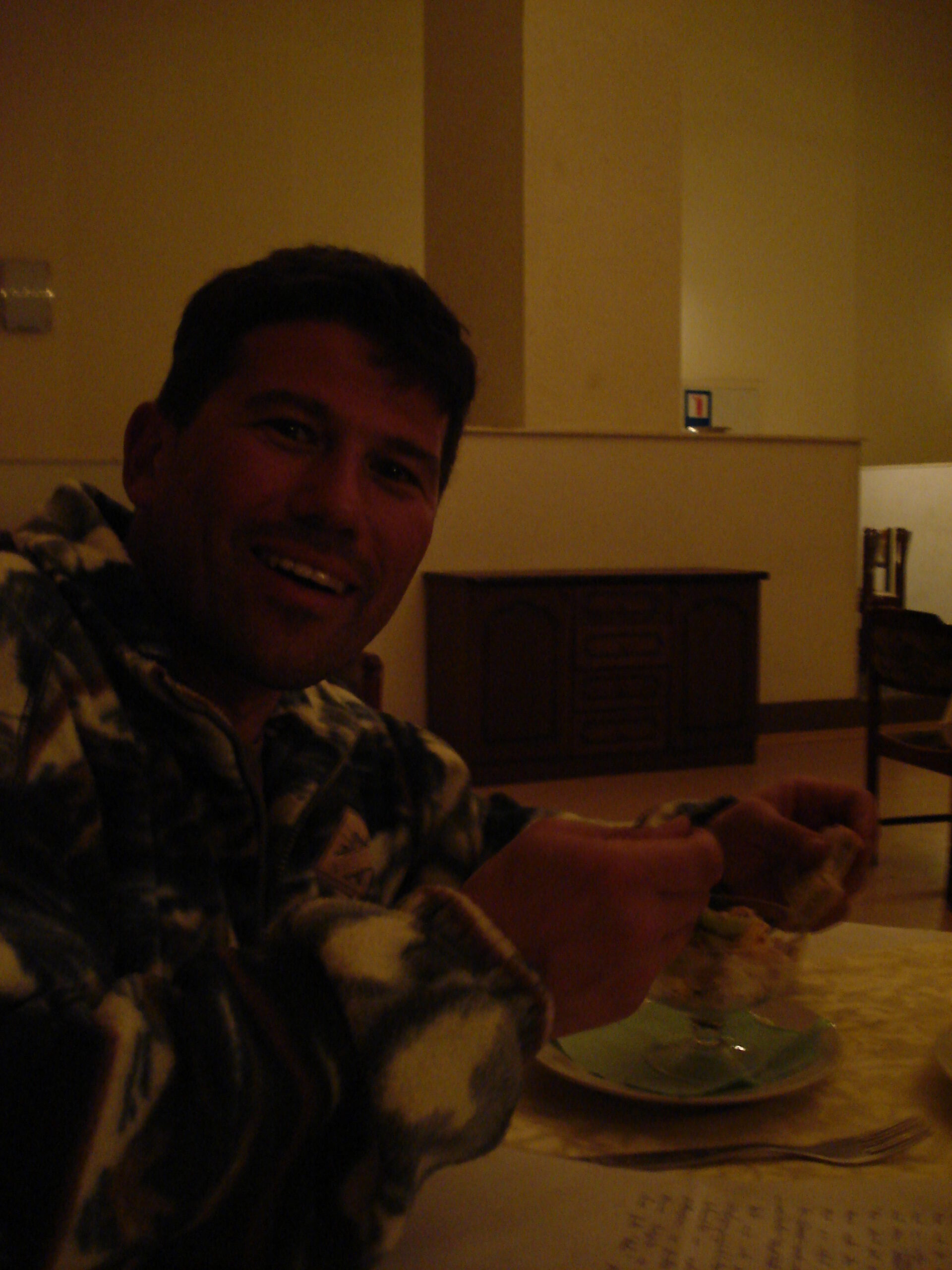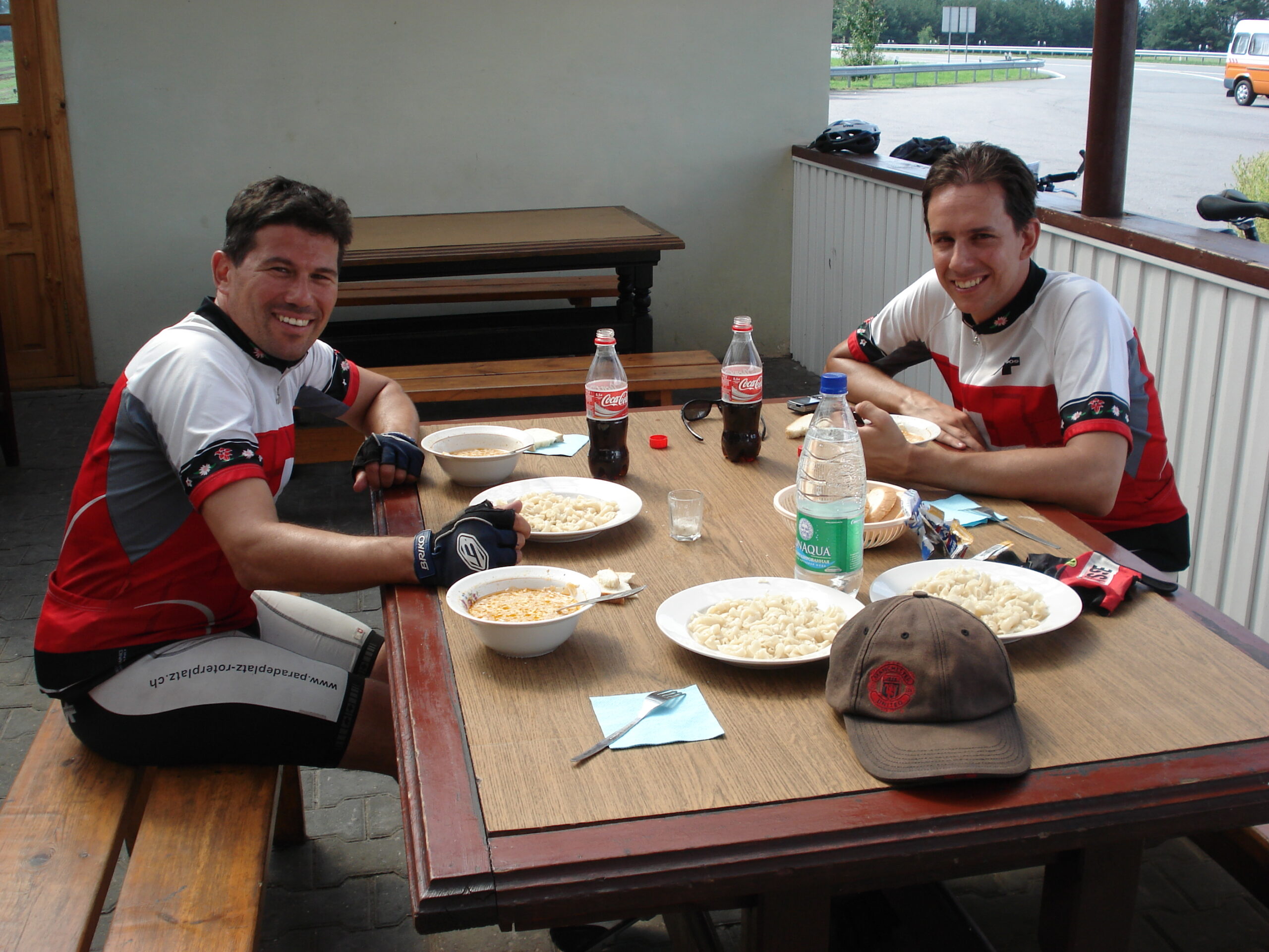 Früh zeigte sich, dass die Abstände zwischen den Verpflegungsmöglichkeiten immer grösser werden. Zur Mittagszeit bekundeten wir etwas grössere Mühe ein nährreiches Mittagessen zu finden. Schliesslich landeten wir auf einem kleinen Rastplatz wo uns eine ölige Zwiebelsuppe und etwas „fade“ Pasta serviert wurden. Bereits 10 Km nach dem Essen waren wir schon wieder hungrig. Ohne unserem mitgeführten „Power-Food“ hätten wir die zweite Hälfte des Tages nicht mehr durchgestanden.