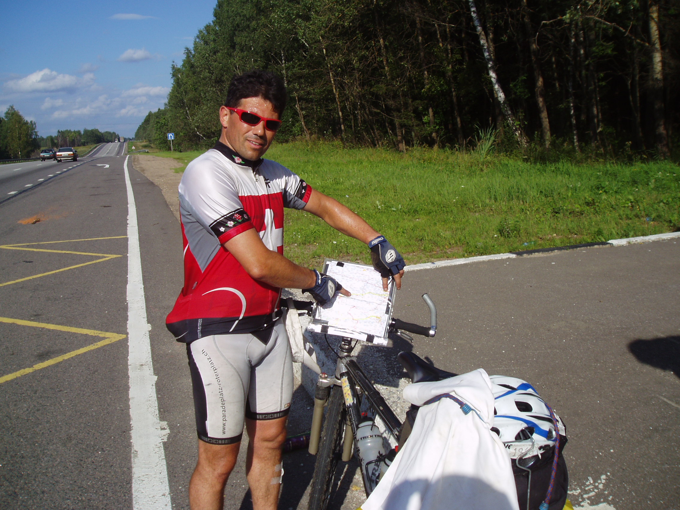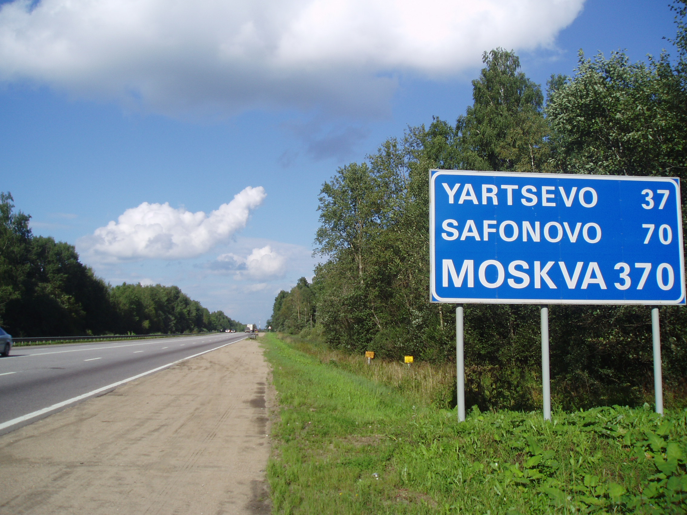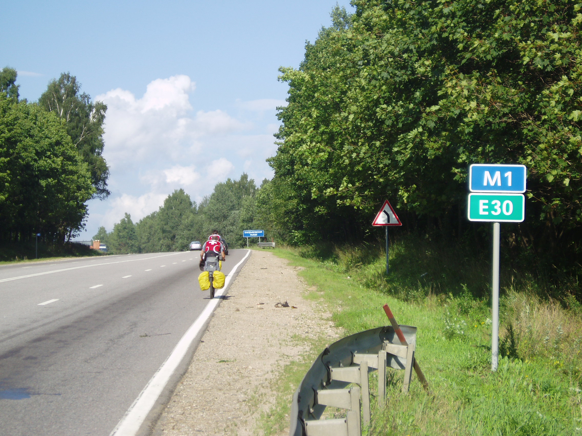 Nach der russischen Grenze wurde die Landschaft wieder leicht huegelig. Seit gestern haeufen sich die Schilder mit der Anschrift MOSCOW, ein sicheres Zeichen dafuer, dass wir unserem grossen Ziel langsam naehrer kommen.