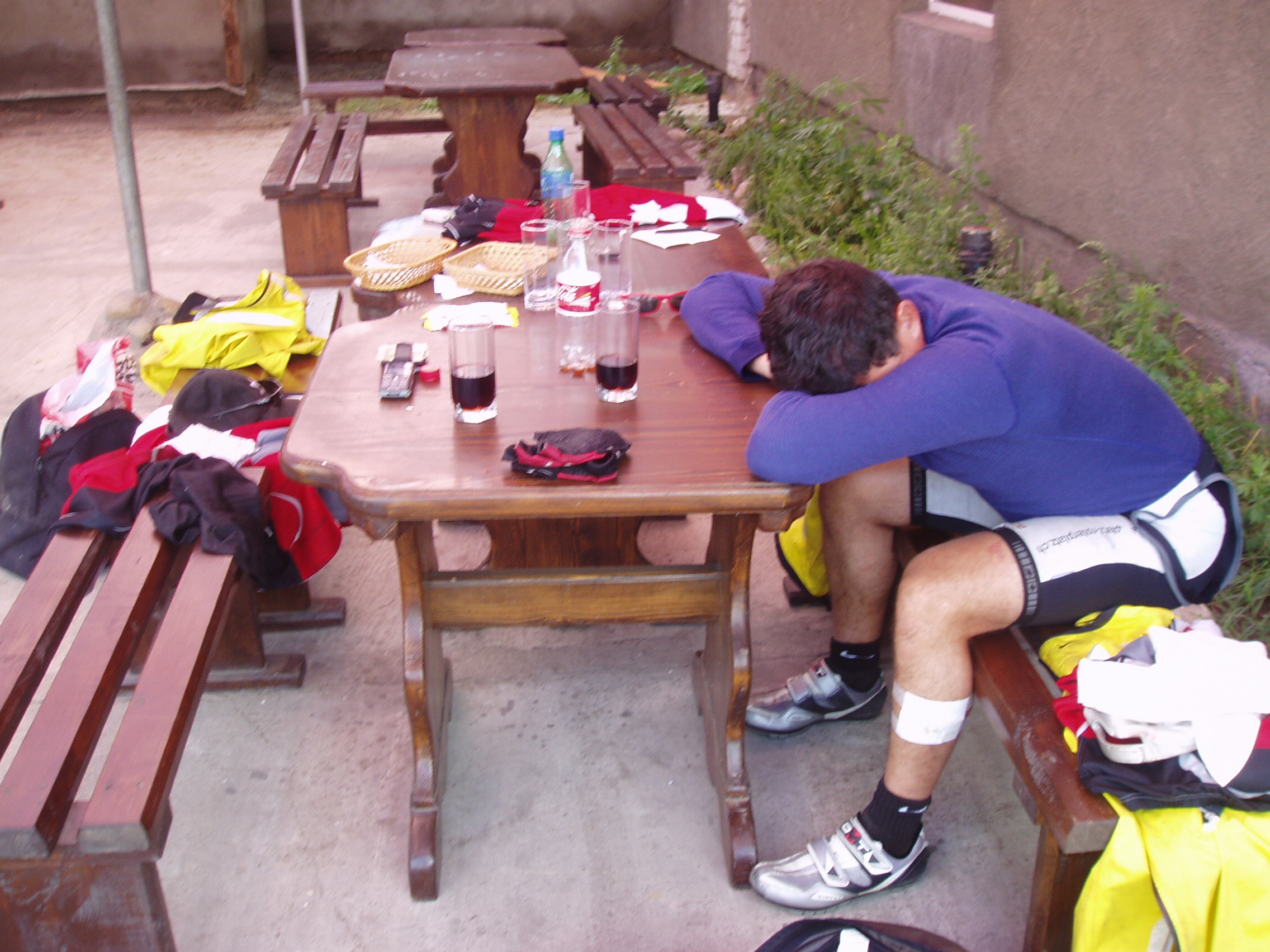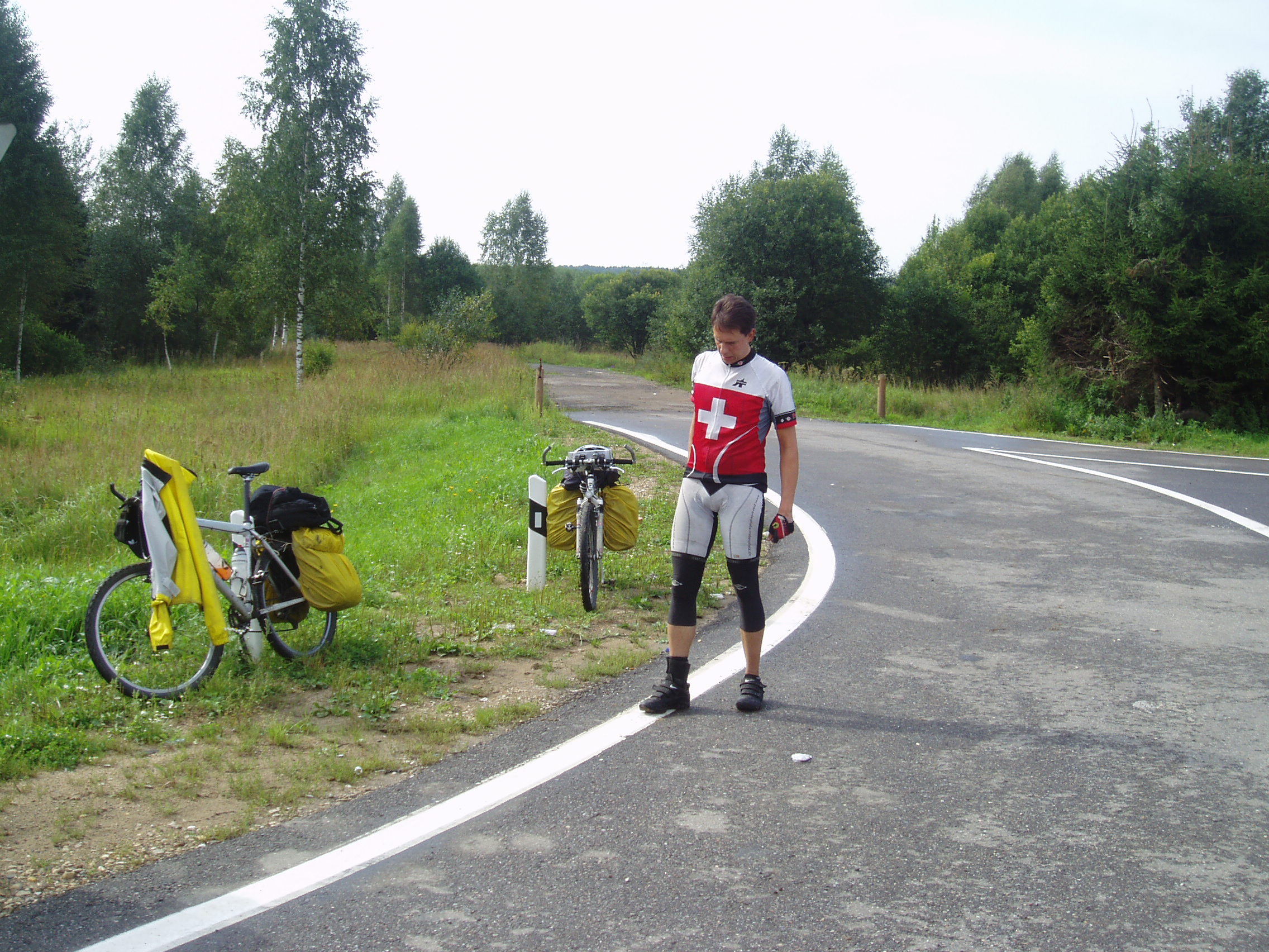 So wie wir beim Mittagessen aussahen, hätte wohl keiner mehr einen Rubel auf uns gewettet. Doch das Essen und die Pause liessen uns wieder auferstehen und wir rollten wieder im gewohnten Tempo ostwärts.